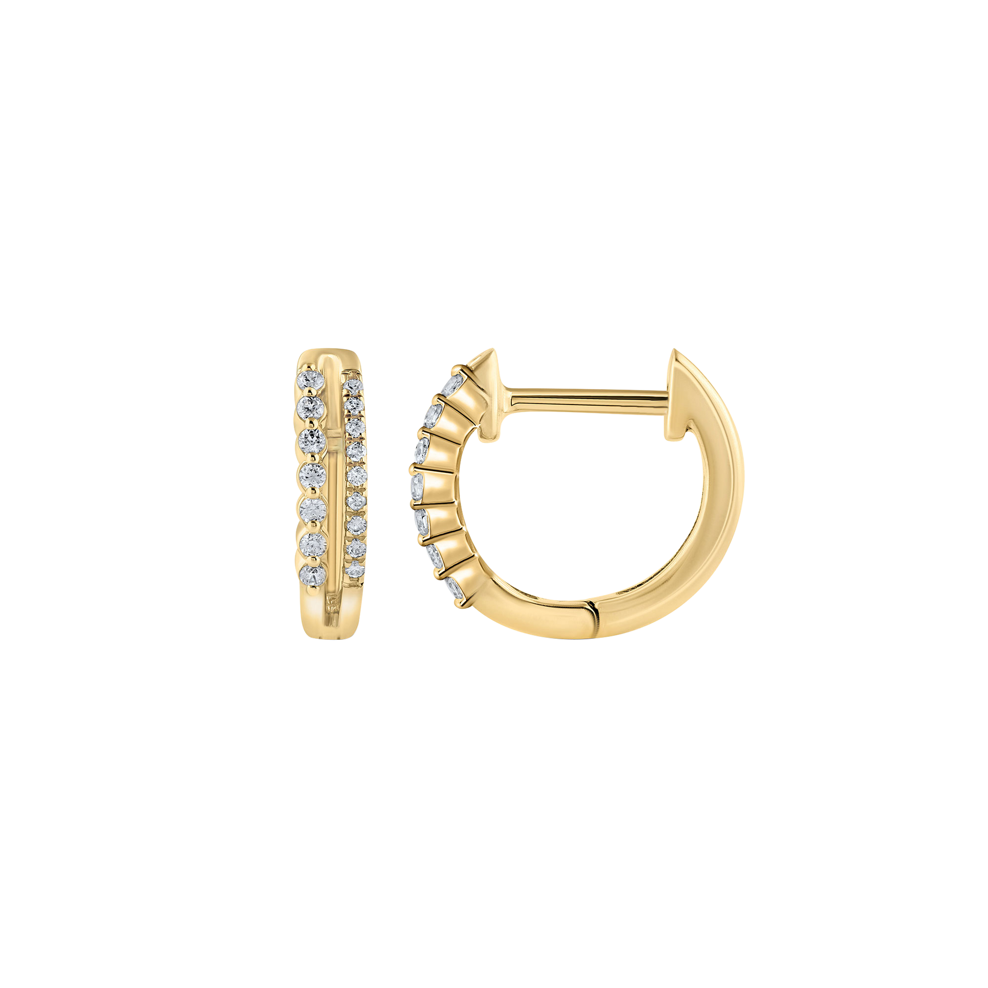 Disse elegante 14 karat guldcreoler imponerer med deres sofistikerede design bestående af to skinner – én besat med små brillanter og én med større. Kombinationen skaber et smukt spil af lys og glans, der fremhæver guldet og giver et eksklusivt udtryk. Perfekte til både hverdag og fest, hvor de tilfører et strejf af luksus og tidløs elegance til enhver stil.