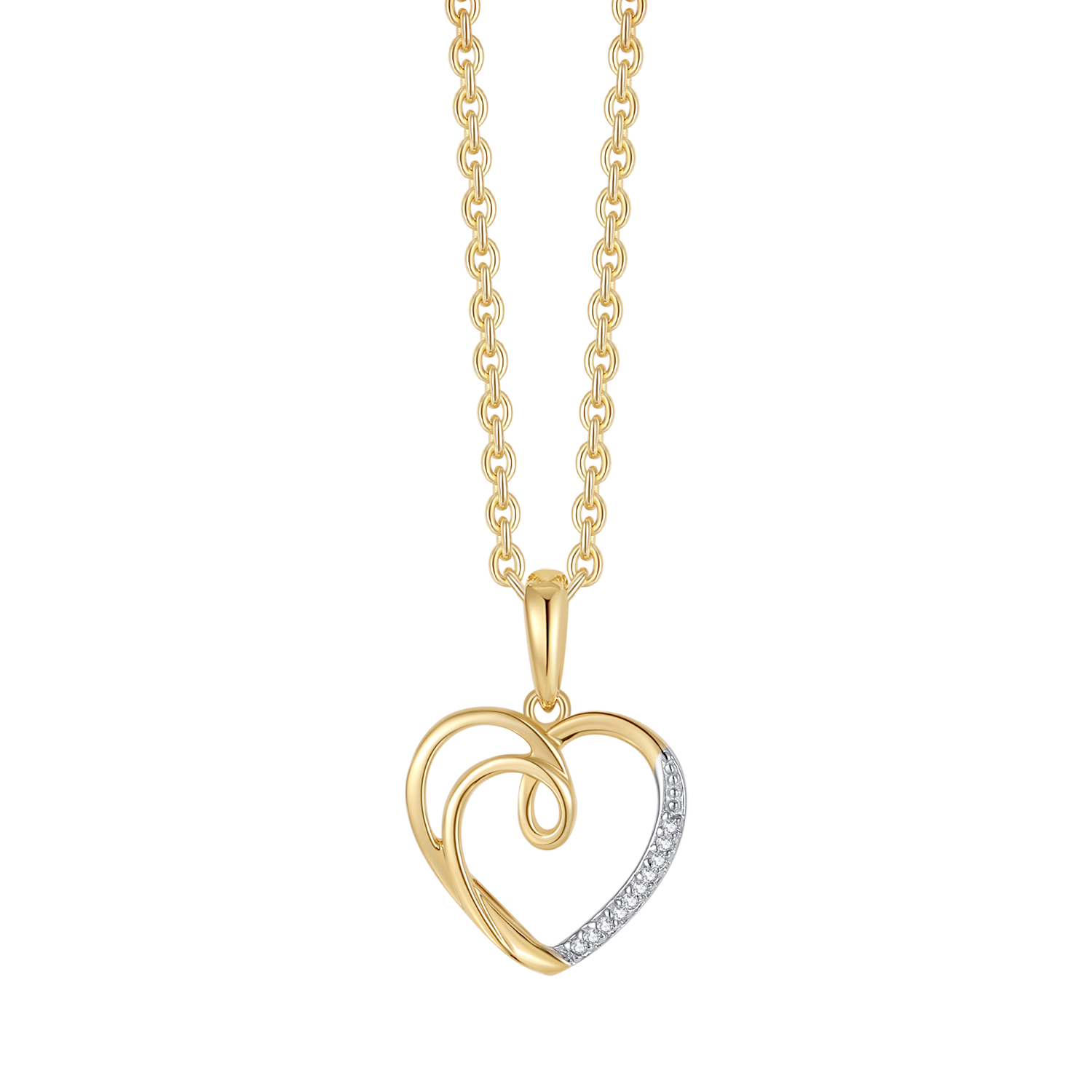 Romantisk og elegant 14 kt. guld halskæde med et smukt hjertevedhæng. Designet har en dobbelt kant på den ene side og funklende syntetiske cubic zirconia på den anden, hvilket skaber en perfekt balance mellem klassisk og moderne stil. Denne halskæde er ideel som gave til en særlig person eller som et tidløst smykke til egen samling.