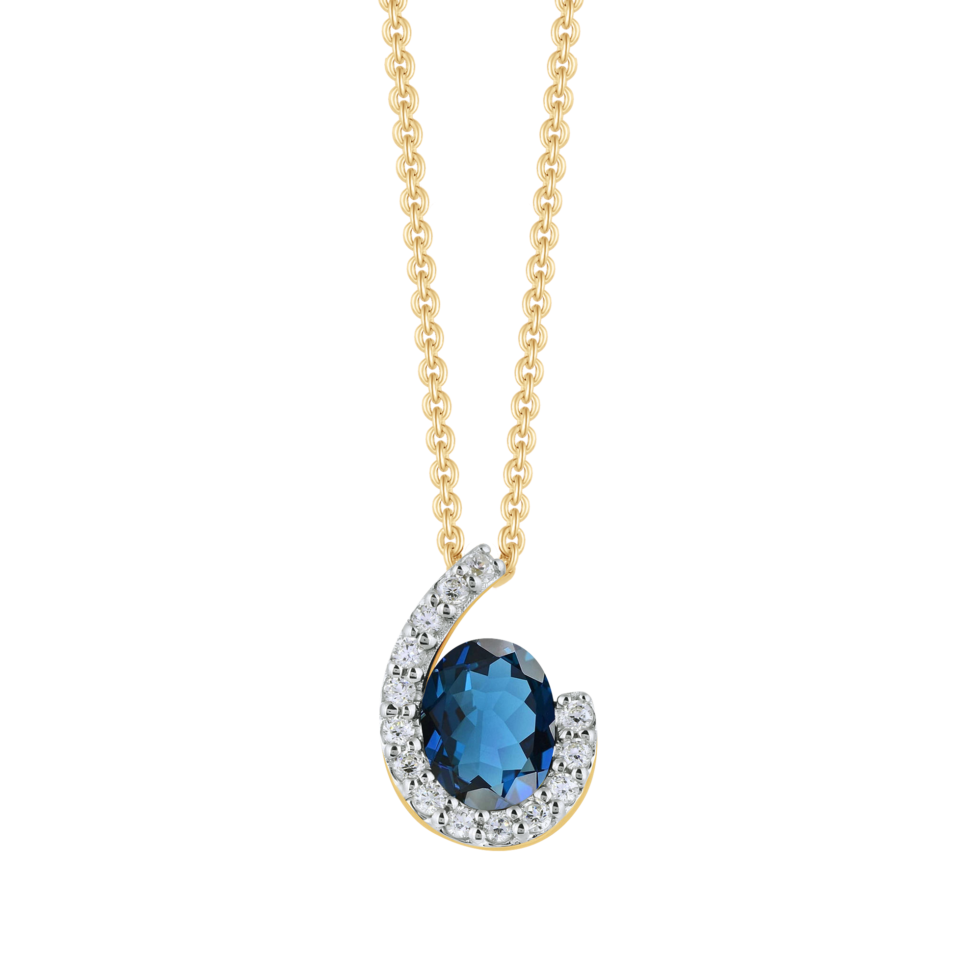 Eksklusiv 14 kt. guld halskæde i rødguld med et elegant vedhæng prydet af en strålende London blå topas. De funklende brillanter på i alt 0,06 ct. w/si, indfattet i rhodinerede fatninger, fremhæver stenens dybe blå farve og giver et luksuriøst udtryk. Denne halskæde kombinerer klassisk elegance med moderne raffinement – perfekt til enhver særlig lejlighed.