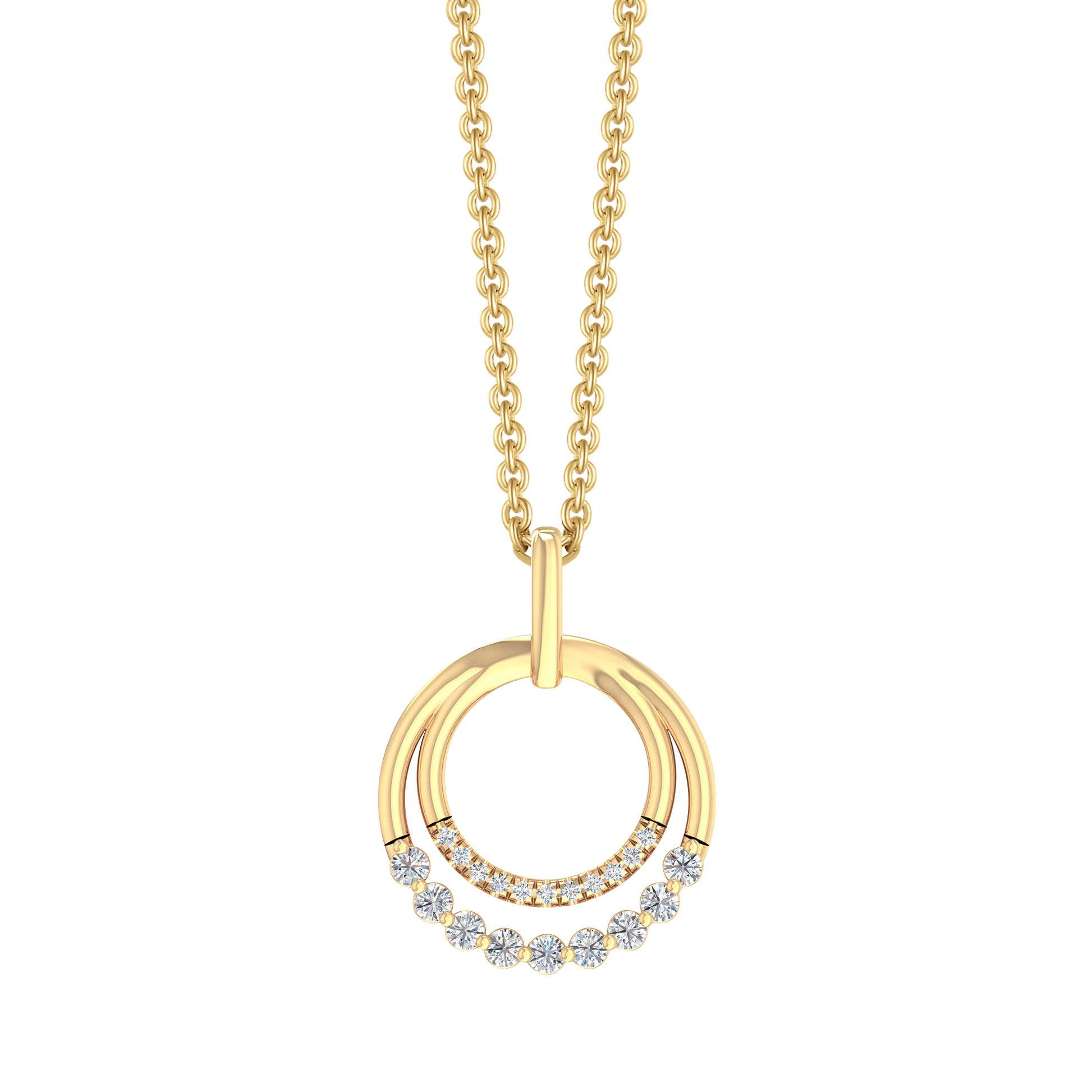 Elegant og tidløs 14 kt. guld halskæde med et smukt vedhæng i form af en dobbelt cirkel. Designet kombinerer små brillanter i den inderste cirkel og større brillanter i den yderste, hvilket skaber et funklende og harmonisk udtryk. Med i alt 0,14 ct. w/si brillanter udstråler smykket luksus og finesse – perfekt til både hverdag og fest.