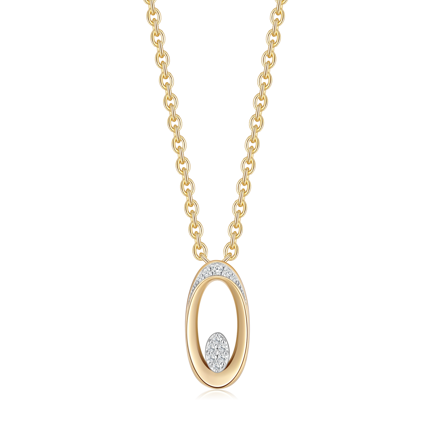Elegant 14 kt. guld halskæde med et smukt oval vedhæng prydet med funklende brillanter. Det klassiske og tidløse design gør halskæden ideel til både hverdag og festlige lejligheder. Den justerbare sølvforgyldte kæde sikrer en behagelig pasform, mens brillanternes diskrete glans tilføjer et sofistikeret touch. Perfekt som gave til en særlig person eller som et eksklusivt smykke til dig selv.
