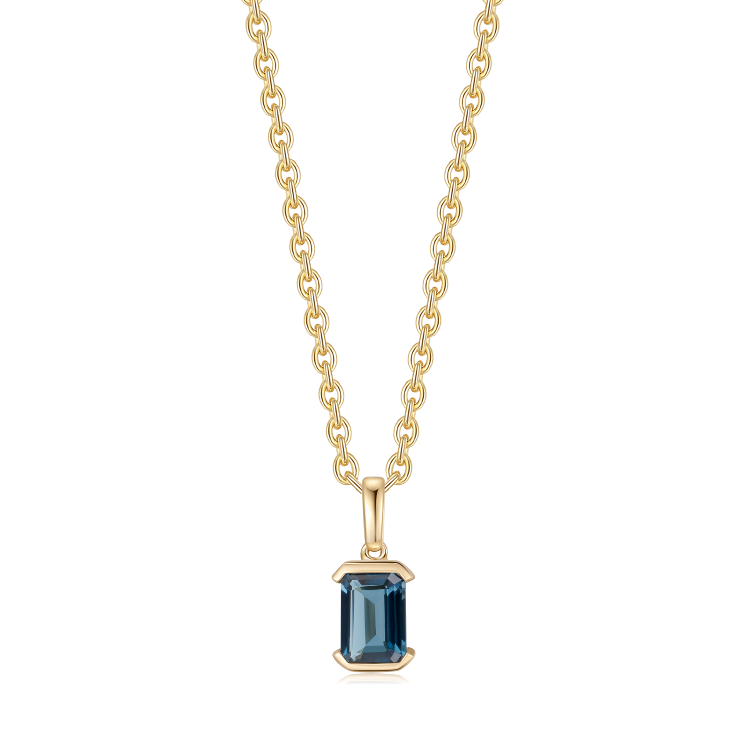 - Vedhæng: Aflang firkant med London blå topas