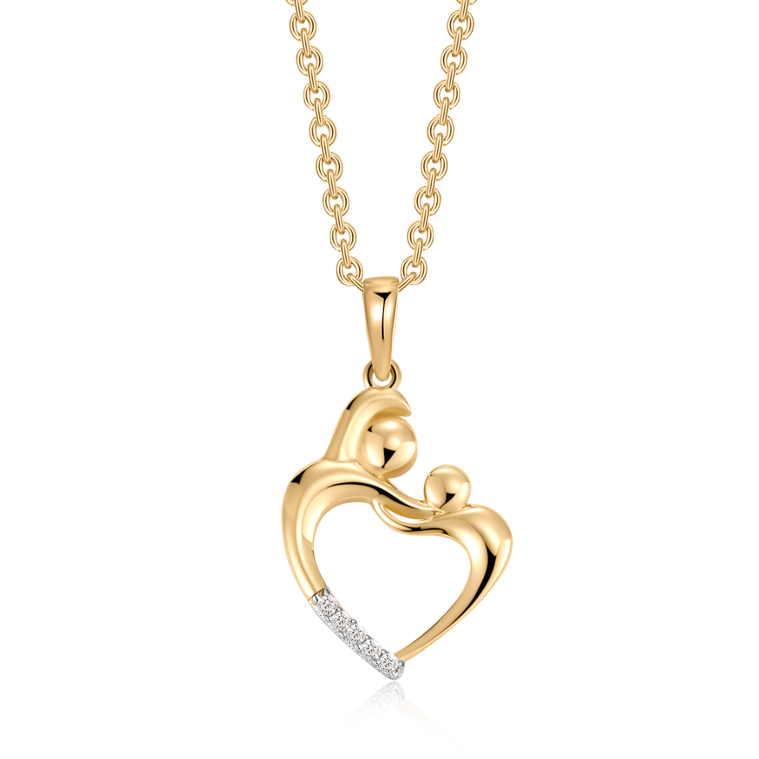 Smuk 14 kt. guld halskæde med et hjertevedhæng, der forestiller “mor og barn” og er pyntet med funklende syntetiske cubic zirconia. Det unikke og kærlige design symboliserer nært forhold og omsorg, hvilket gør halskæden til et perfekt smykke til hverdag eller særlige lejligheder. En meningsfuld gave til en mor, bedstemor eller en du holder af.