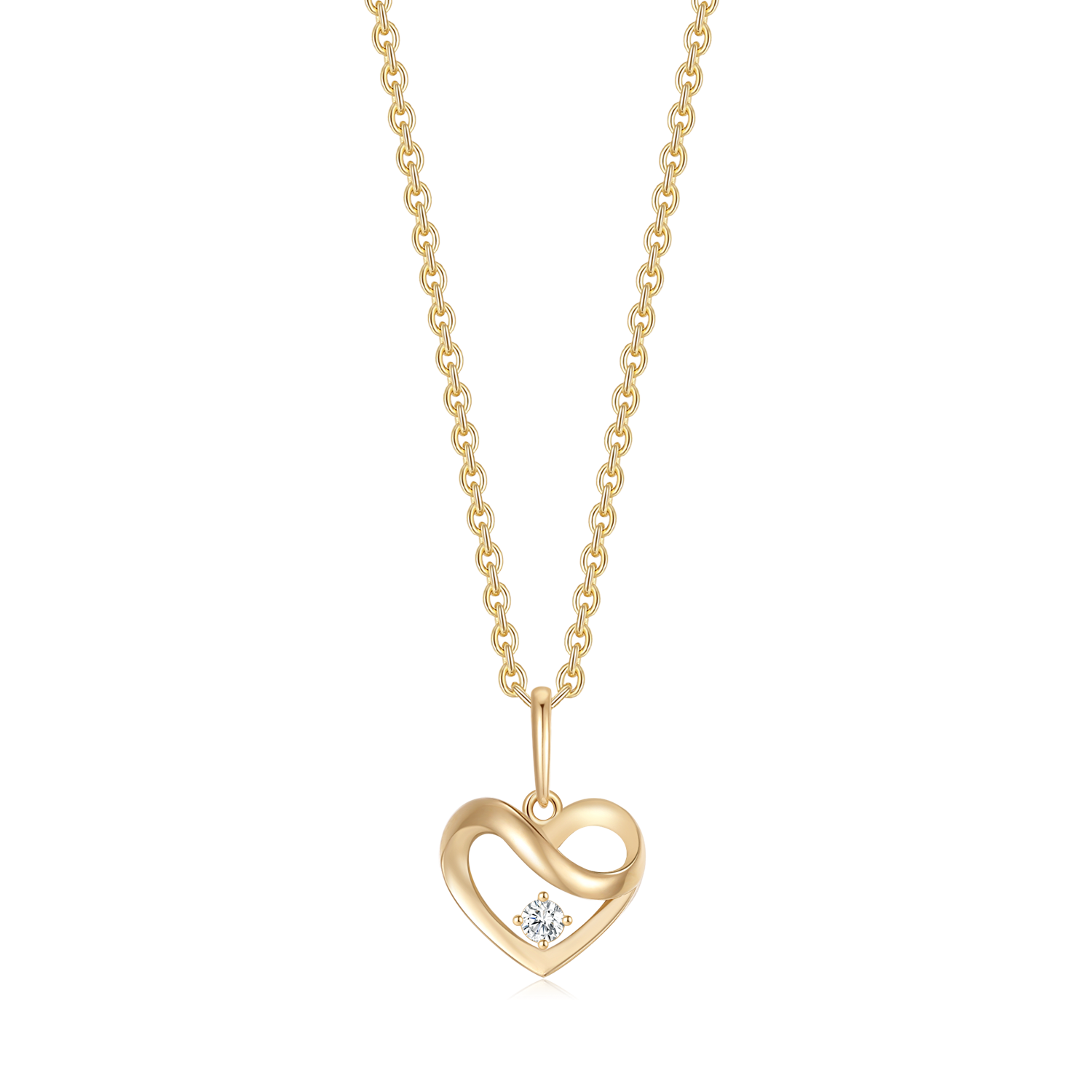 Elegant 14 kt. guld halskæde med et hjertevedhæng, hvor et evighedstegn og en funklende syntetisk cubic zirconia pryder midten. Det tidløse og romantiske design gør halskæden perfekt til både hverdag og særlige lejligheder. Den justerbare sølvforgyldte kæde sikrer komfort, mens vedhængets detaljer tilføjer et sofistikeret og symbolsk touch. En smuk gave til en, du holder af.