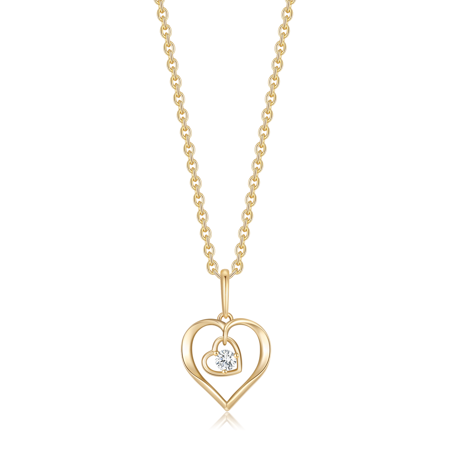 Smuk 14 kt. guld halskæde med et dobbelt hjertevedhæng, hvor det store hjerte er pyntet med en funklende syntetisk cubic zirconia, mens det lille hjerte fremstår helt glat. Det romantiske og elegante design gør halskæden perfekt til både hverdag og særlige lejligheder. Den justerbare sølvforgyldte kæde sikrer komfort og fleksibilitet, og smykket er en ideel gave til en, du holder af.