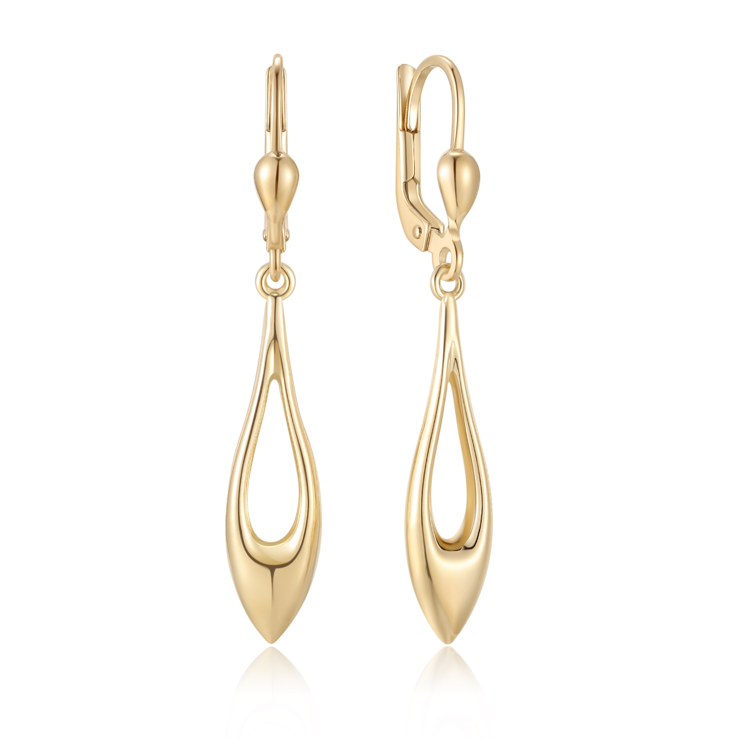 Elegant 14 kt. guld ørehænger formet som en aflang dråbe med hul i midten og en lukket, bred bund. Det unikke design giver et moderne og sofistikeret udtryk, der fanger lyset smukt og fremhæver guldet. Ørehængeren kombinerer klassisk elegance med nutidig stil og er perfekt til både hverdag og festlige lejligheder.