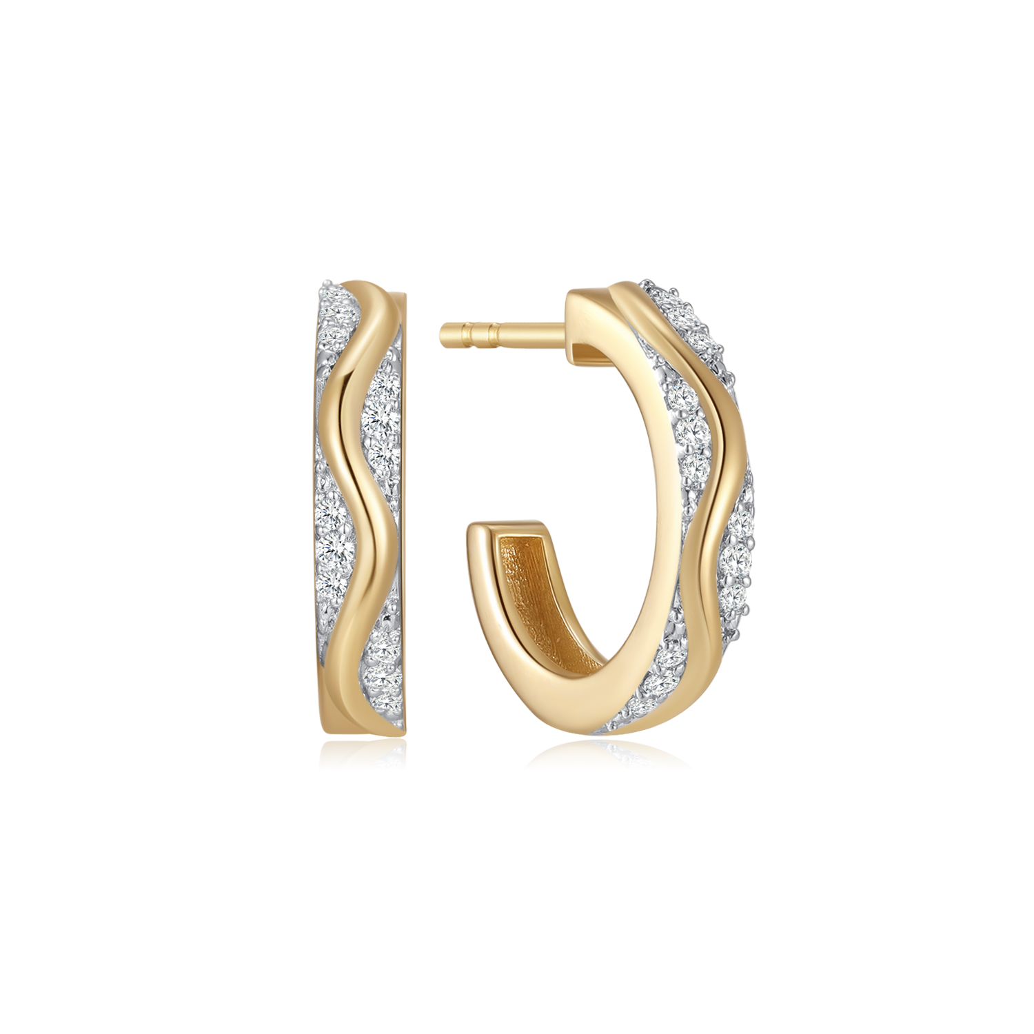 Disse smukke ørestikker i 14 karat guld er designet som elegante halve creoler med et delikat mønster og funklende brillanter. Kombinationen af det detaljerede design og de skinnende sten giver et luksuriøst og tidløst udtryk. Ørestikkerne passer perfekt til både hverdag og festlige lejligheder, hvor de tilfører et eksklusivt og feminint præg til enhver stil.
