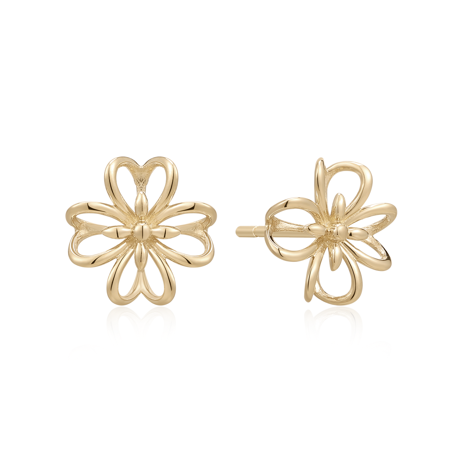 Disse romantiske ørestikker i 14 karat guld er designet som en smuk blomst, formet af fire hjerter. Det unikke design symboliserer kærlighed og harmoni, hvilket gør dem ideelle som gave eller et personligt smykkevalg. Med deres elegante form og blanke overflade tilføjer de et feminint og tidløst udtryk, der passer perfekt til både hverdag og festlige lejligheder.