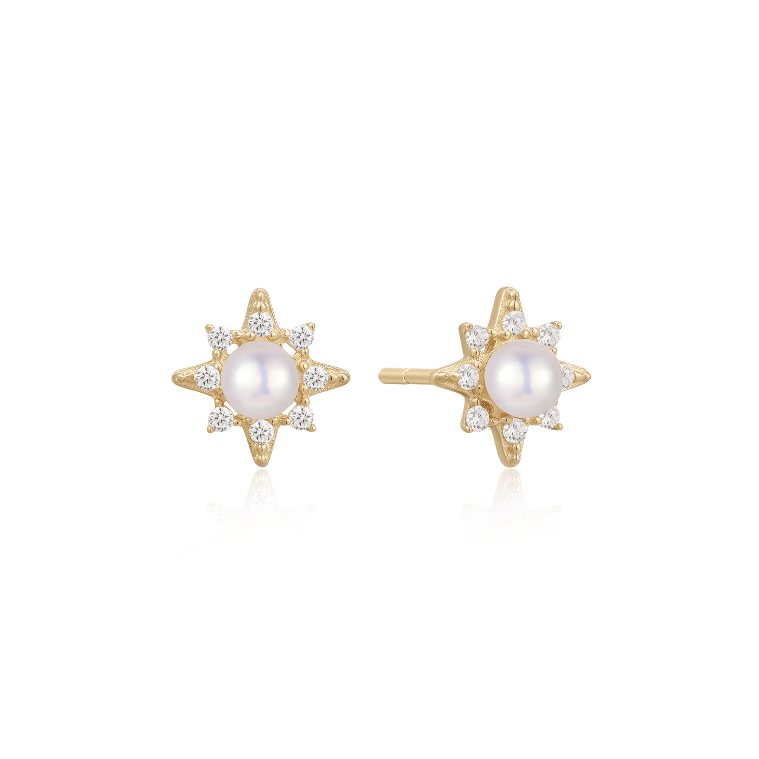 Disse fortryllende 14 kt. guld ørestikker er udformet som blomster og prydet med en elegant ferskvandsperle i midten, omgivet af funklende syntetiske cubic zirconia. Kombinationen af ægte guld, perle og sten giver et raffineret og feminint udtryk. Ørestikkerne er perfekte til både hverdag og festlige lejligheder og tilfører et strejf af klassisk luksus til enhver stil.