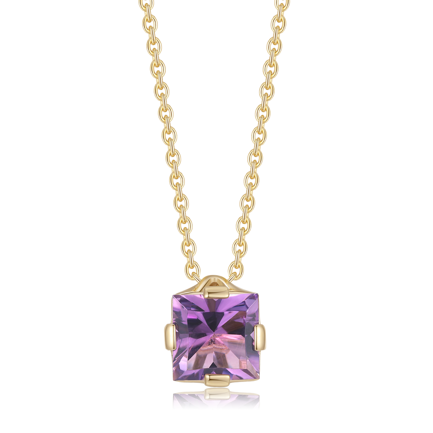 Denne elegante 9 kt. guldhalskæde har en firkantet amethyststen på 9 mm i diameter, som tilføjer et smukt og iøjnefaldende element til designet. Halskæden er sølvforgyldt og justerbar i længden fra 42-45 cm, hvilket gør den ideel til at tilpasse sig forskellige stilarter og lejligheder. En perfekt gaveidé eller et stilfuldt supplement til din smykkesamling.