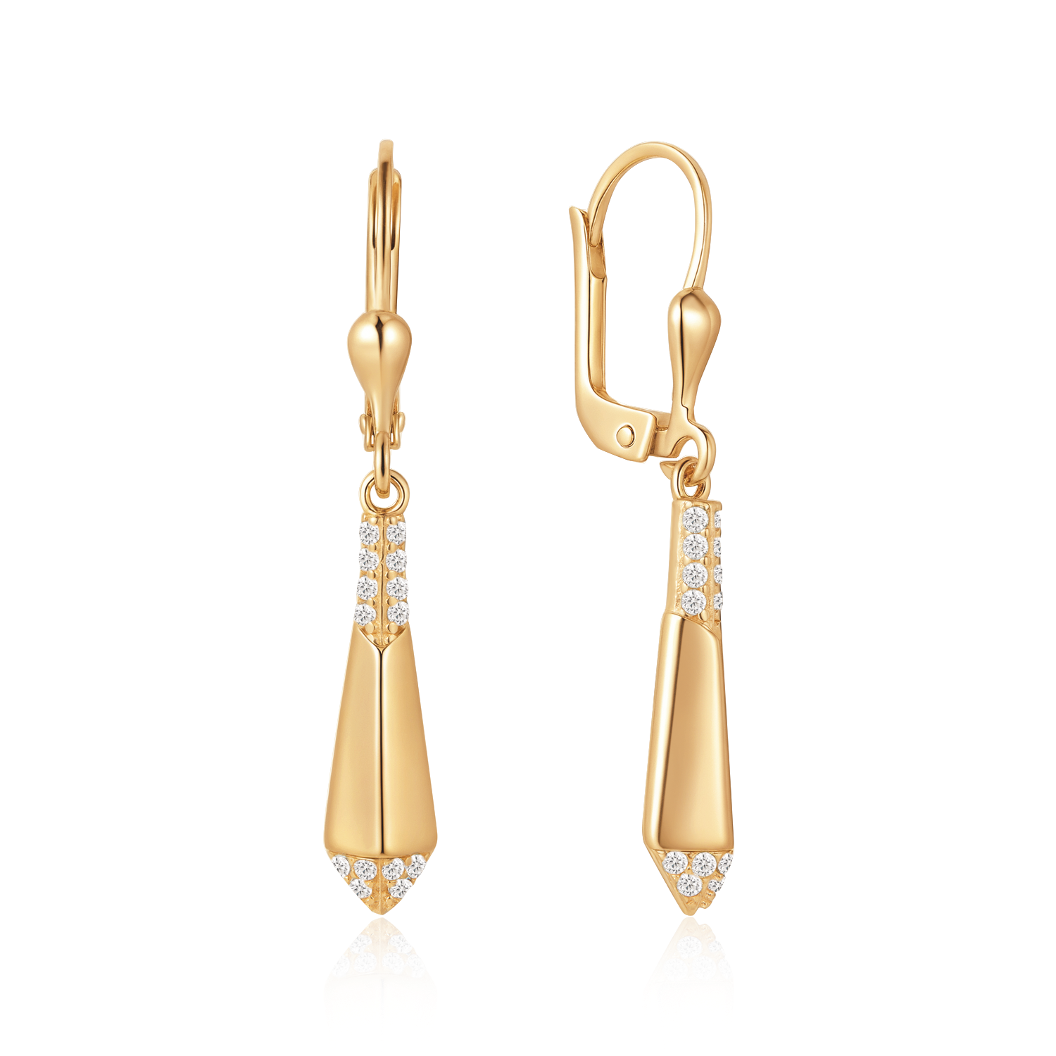 Eksklusiv 8 kt. guld ørehænger formet som en aflang dråbe, smukt besat med funklende syntetiske cubic zirconia. Det elegante design kombinerer klassisk finesse med et moderne udtryk, der fanger lyset på en subtil og raffineret måde. Øreringene er perfekte til både hverdag og fest og tilfører et strejf af luksus til enhver stil.