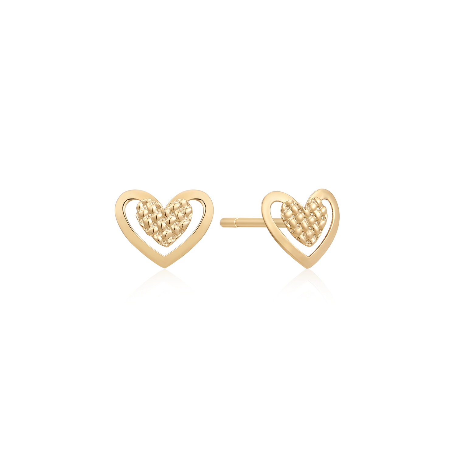 Disse charmerende 8 kt. guld ørestikker har et klassisk hjerteformet design, smukt pyntet med funklende syntetiske cubic zirconia. Kombinationen af det varme guld og de glitrende sten skaber et feminint og tidløst udtryk, perfekt som gave eller til at forkæle dig selv. Ørestikkerne passer til både hverdag og festlige lejligheder, hvor de tilføjer et subtilt strejf af elegance.