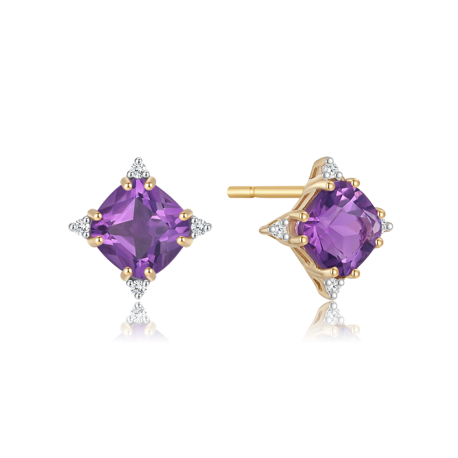 Disse stilfulde 8 kt. guld ørestikker fremhæver en smuk firkantet ametyst, elegant omgivet af glitrende syntetiske cubic zirconia i hvert hjørne. Kombinationen af den dybe lilla farve og det varme guld skaber et sofistikeret og tidløst udtryk. Ørestikkerne er perfekte til både hverdag og fest, og tilfører et subtilt strejf af luksus og glamour til ethvert outfit.