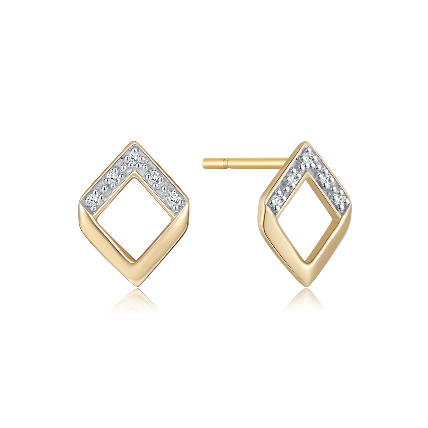 Disse moderne 8 kt. guld ørestikker har en unik skæv firkant-design, smukt pyntet med funklende syntetiske cubic zirconia. Det kreative og stilfulde udtryk kombinerer elegance med et moderne twist, hvilket gør dem perfekte til både hverdag og særlige lejligheder. Ørestikkerne tilfører subtil glamour og lys til dit look, samtidig med at de bevarer et tidløst og sofistikeret præg.