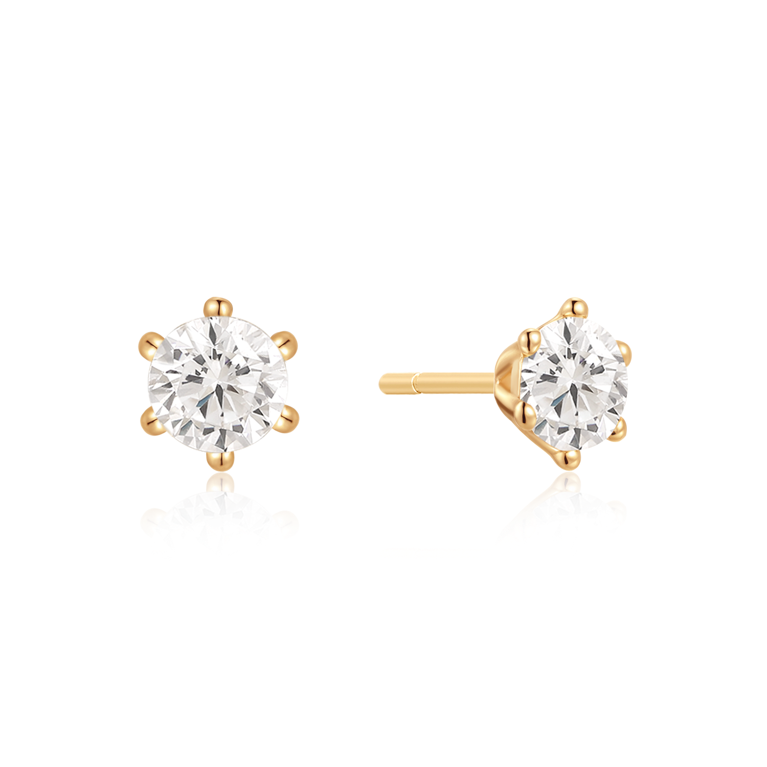 Disse elegante 8 kt. guld ørestikker kombinerer klassisk stil med tidløs glans. De smukke ørestikker er prydet med en funklende syntetisk cubic zirconia på 6 mm, der holdes sikkert fast i seks grabber. Perfekte til både hverdag og fest, tilfører de et strejf af luksus til ethvert look. Et ideelt valg for dem, der sætter pris på enkel elegance og kvalitet.