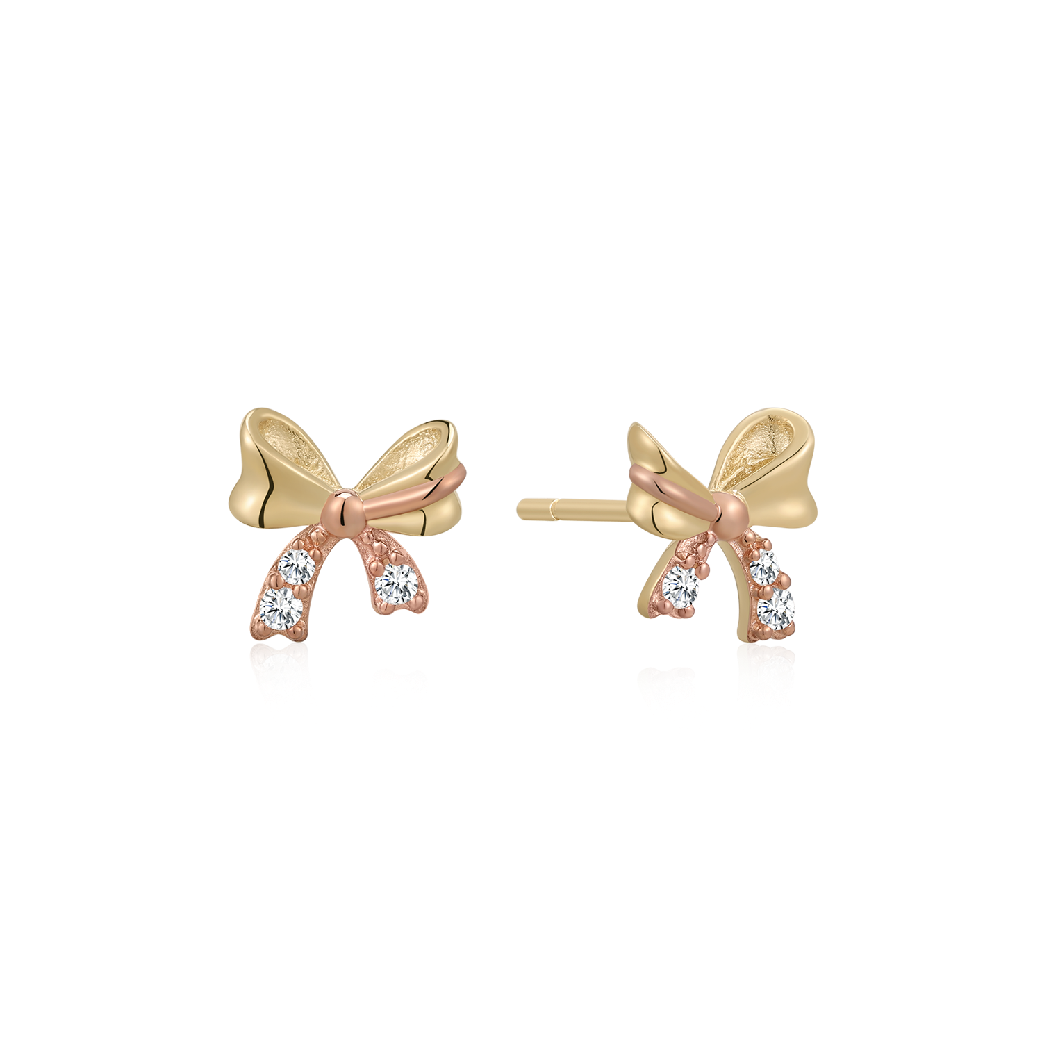 Disse charmerende 8 kt. guld ørestikker er formet som elegante sløjfer, der udstråler femininitet og ynde. Hver ørestik er smukt dekoreret med funklende syntetiske cubic zirconia, som giver et eksklusivt og raffineret udtryk. Det tidløse design gør dem ideelle til både hverdag og fest, hvor de tilføjer et diskret, men strålende touch til enhver stil.