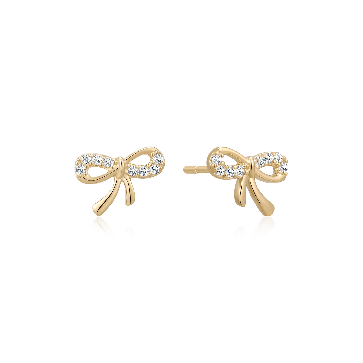 Disse elegante 8 kt. guld ørestikker er formet som fine sløjfer og smukt udsmykket med funklende syntetiske cubic zirconia. Kombinationen af det klassiske guld og de klare sten giver et feminint og eksklusivt udtryk. Ørestikkerne passer perfekt til både hverdagsbrug og festlige lejligheder, hvor de tilføjer et strejf af tidløs elegance og raffinement.