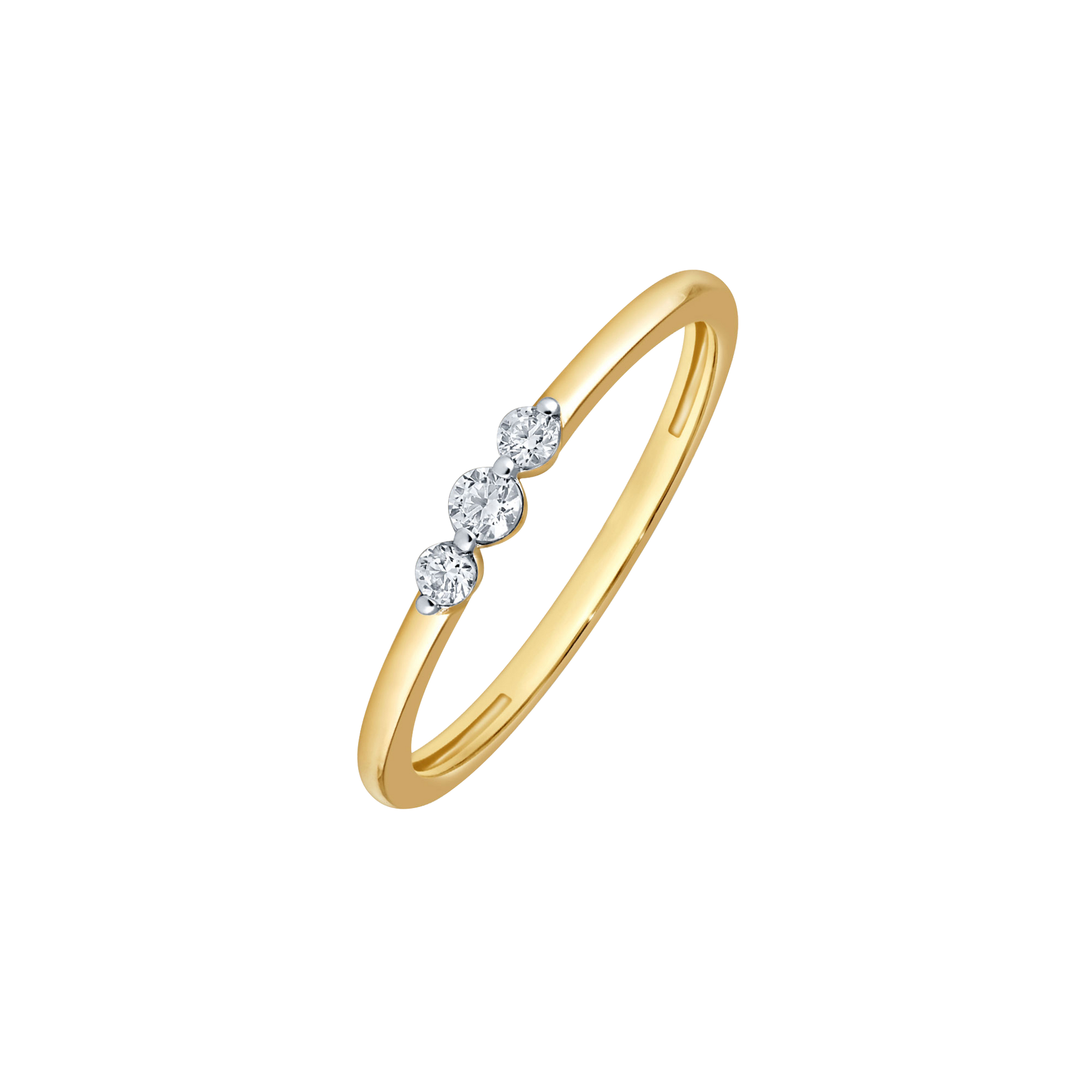 Denne smukke 14 kt. guld ring kombinerer klassisk elegance med moderne raffinement. Ringen er udsmykket med tre brillanter, hvor den midterste er større og fremhævet af mindre sten i rhodinerede fatninger, der giver ekstra glans og kontrast. Et stilfuldt og tidløst smykke, som udstråler luksus og passer perfekt til både hverdag og festlige lejligheder.