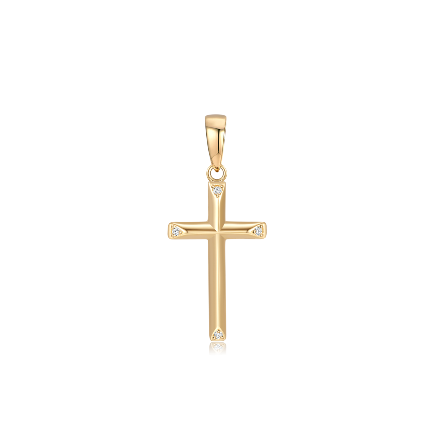 Dette elegante vedhæng er fremstillet i 8 kt. guld og har et klassisk korsdesign prydet med funklende syntetiske cubic zirconia-sten. Det kombinerer tidløs stil med et strejf af luksus og er perfekt til både hverdag og festlige lejligheder. Vedhænget udstråler enkel elegance og kan bæres alene eller sammen med en kæde for et personligt udtryk.