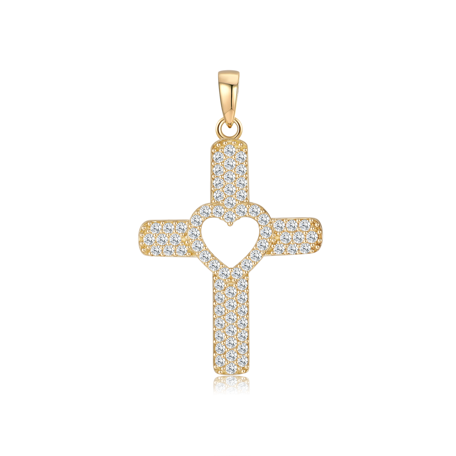 Dette smukke vedhæng i 8 kt. guld er formet som et elegant kors, udsmykket med funklende syntetiske cubic zirconia-sten og et delikat hjerte i midten. Kombinationen af korsets klassiske symbolik og hjertets varme udtryk skaber et unikt og stilfuldt smykke. Perfekt som gave til en du holder af, eller som et personligt symbol på tro, kærlighed og håb.
