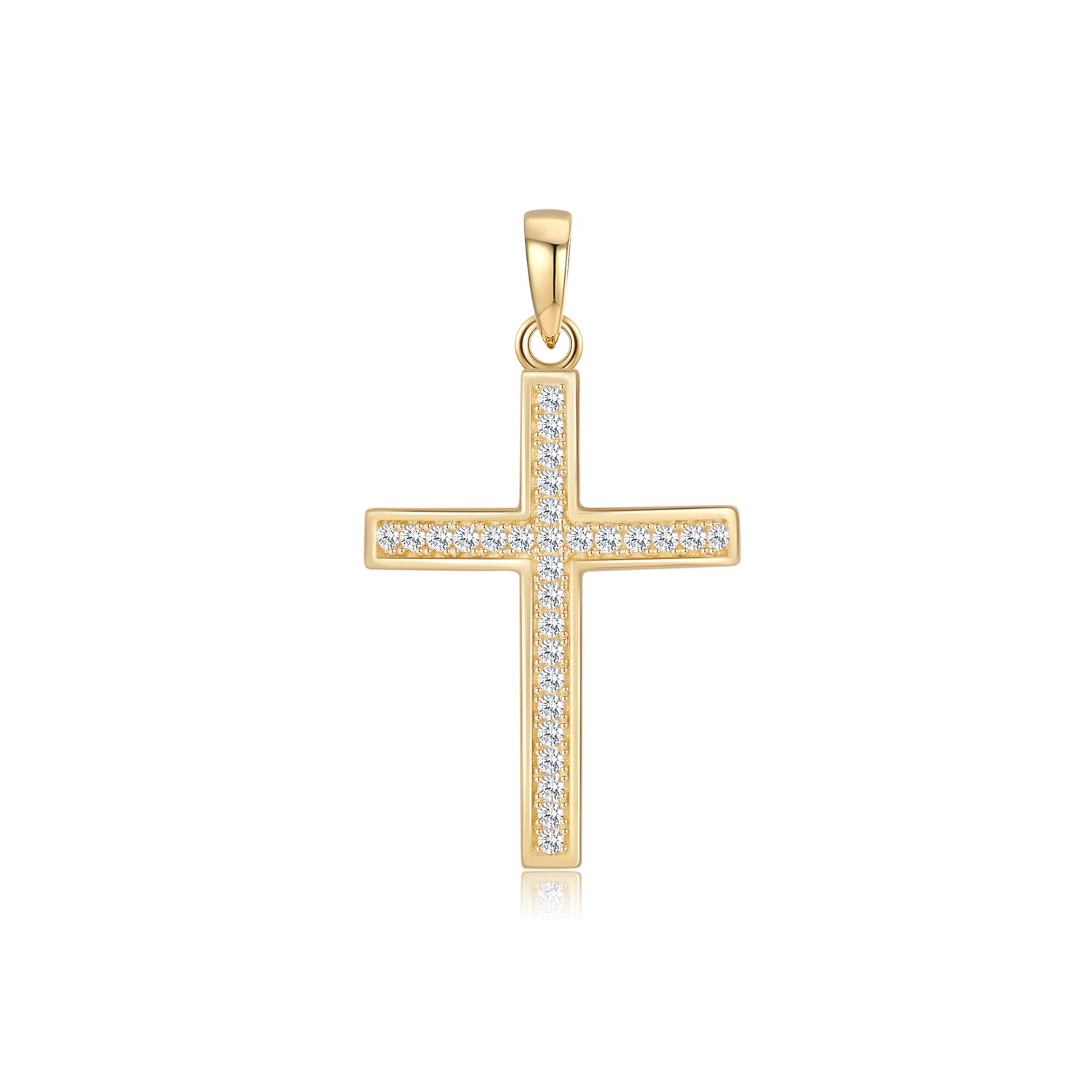 Dette smukke vedhæng i 8 kt. guld er formet som et klassisk kors, prydet med funklende syntetiske cubic zirconia-sten, der giver et elegant og strålende udtryk. Smykket kombinerer traditionelt design med moderne glans og symboliserer både tro og tidløs skønhed. Et alsidigt vedhæng, der passer perfekt til både hverdag og festlige lejligheder, og som udgør en fin gaveidé.