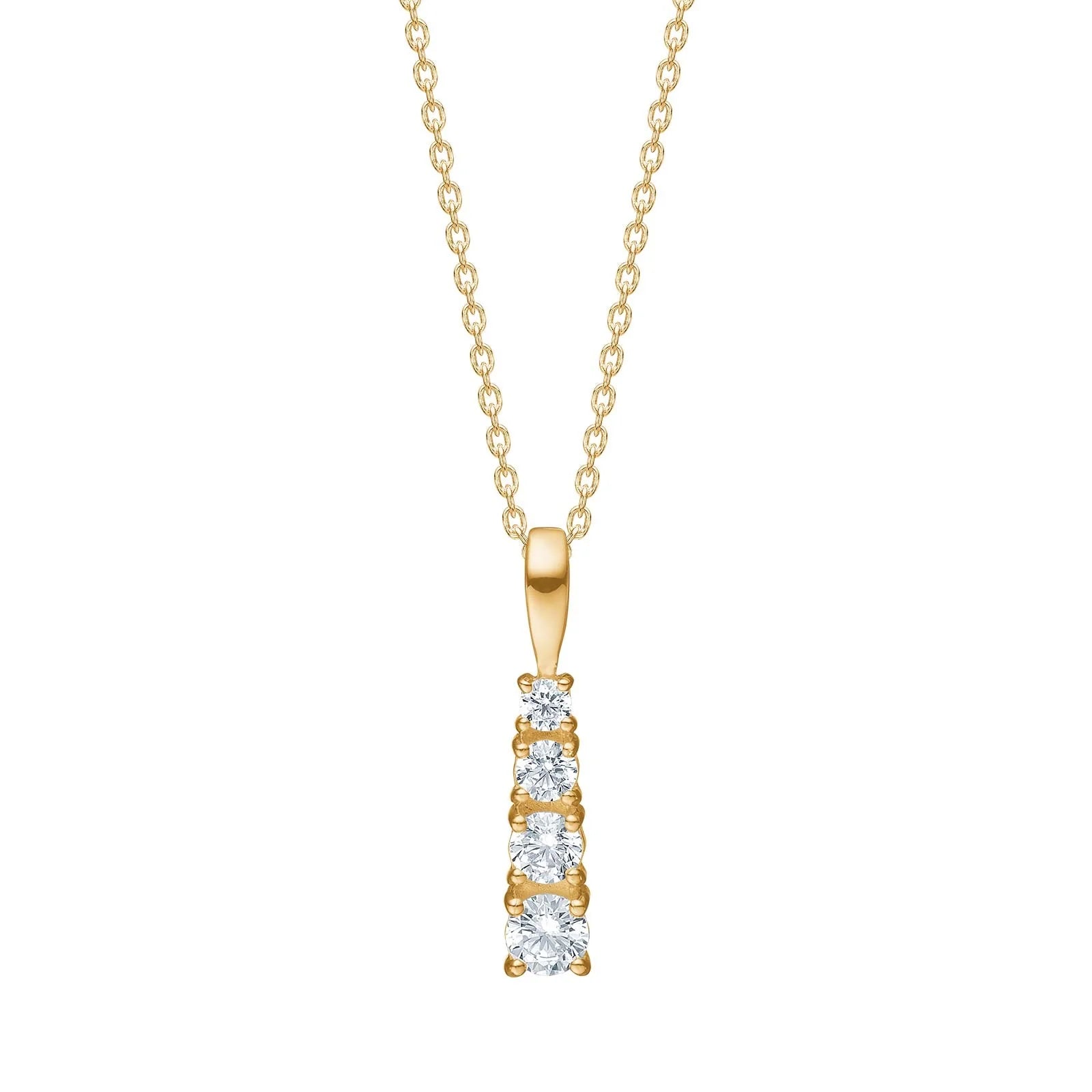 Elegant halskæde i 8 kt. guld med et smukt vedhæng udsmykket med funklende CZ-sten. Smykket kombinerer klassisk design med moderne detaljer og skaber et feminint udtryk, der passer til enhver lejlighed. Den forgyldte kæde medfølger og gør det let at bære smykket direkte eller give det som en gave til en kvinde, der sætter pris på stil, elegance og tidløse smykker i høj kvalitet.