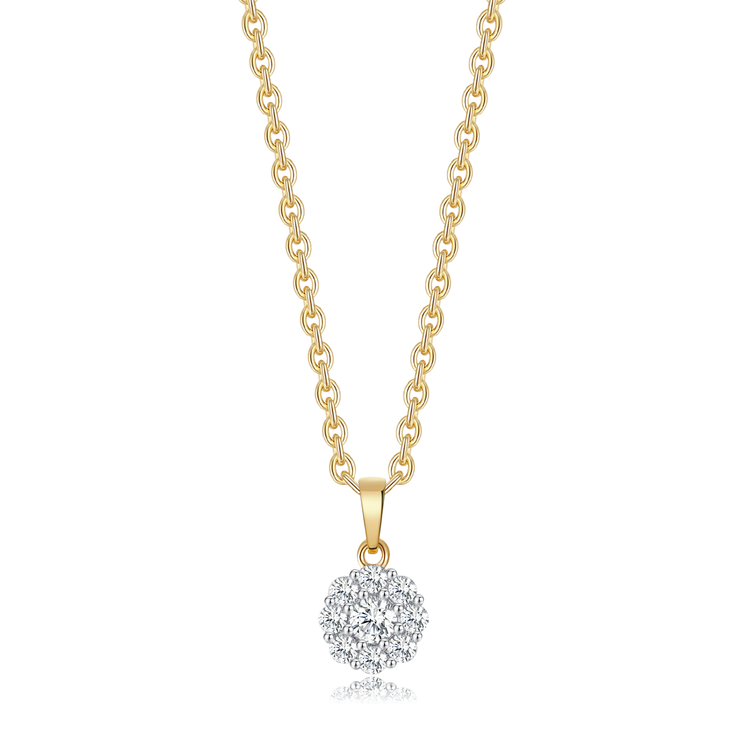 Delikat guld halskæde med et elegant blomstervedhæng, smukt udsmykket med funklende syntetiske cubic zirconia. Smykket udstråler femininitet og tidløs charme, perfekt til både hverdagsbrug og festlige anledninger. Den sølvforgyldte kæde kan justeres mellem 42 og 45 cm og giver et raffineret og klassisk udtryk, der passer til enhver stil.