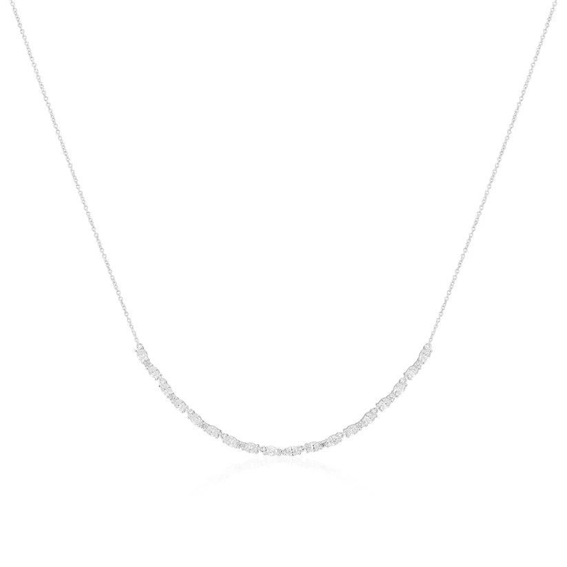 Sif 925 Sterling Sølv Halskæde Ellera Ovale er et elegant og tidløst smykke, der passer perfekt til både hverdag og fest. Halskæden er fremstillet i 925 sterlingsølv og belagt med rhodium, hvilket giver en smuk, blank overflade og ekstra beskyttelse mod anløbning. De ovale former er smukt indfattet med facet-slebne hvide zirkoner, som giver et diskret, men eksklusivt glimt. Den justerbare kædelængde sikrer en behagelig pasform og gør halskæden nem at tilpasse til forskellige outfits.