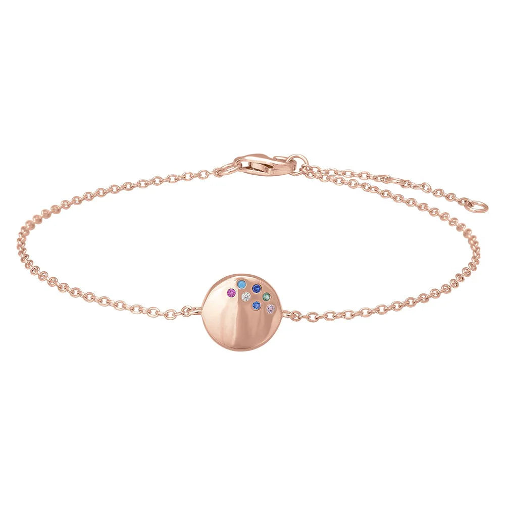 Sølv armbåndet ElinoraNor er et elegant og feminint smykke til kvinder. Armbåndet har en cirkelformet detalje, er fremstillet i blankt sølv og rosaforgyldt for et eksklusivt udtryk. Den funklende, rainbow-farvede kubiske zirkonia tilfører smykket et livligt og sofistikeret touch. Med en højde og bredde på 9 mm har armbåndet et markant, men stilfuldt udtryk, perfekt til både hverdag og særlige lejligheder.