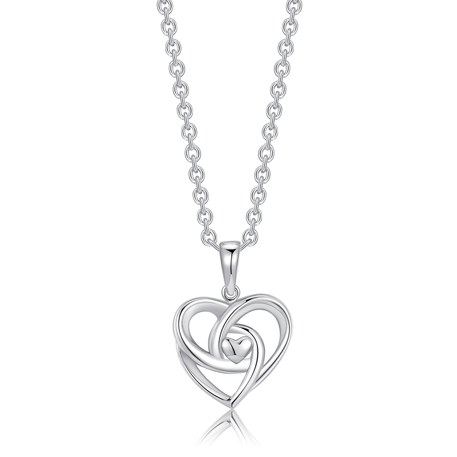 Denne elegante sølvhalskæde er fremstillet i rhodineret sølv og har et smukt hjertevedhæng formet af tre buer med et lille hjerte i midten. Det stilfulde og tidløse design symboliserer kærlighed og samhørighed, hvilket gør smykket ideelt som gave til en, du holder af. Den justerbare kæde på 42–45 cm sikrer en perfekt pasform til enhver lejlighed.