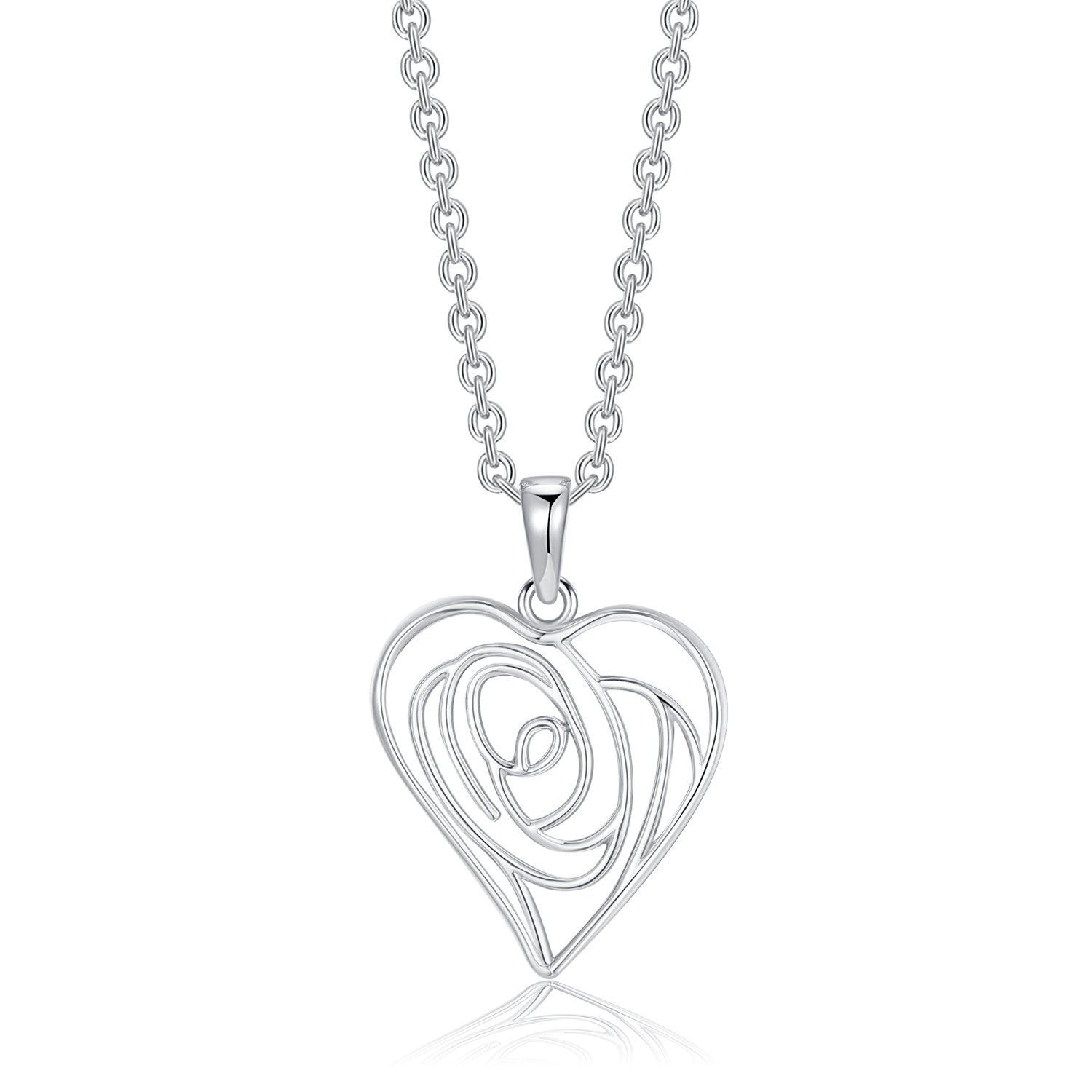 Elegant sølvhalskæde med et smukt rhodineret hjertevedhæng dekoreret med et fint mønster. Halskæden er fremstillet i ægte sølv og har en glansfuld overflade, som fremhæver det romantiske design. Den er ideel til både hverdag og særlige lejligheder, hvor du ønsker et klassisk og tidløst udtryk. Perfekt gaveidé til en, du holder af.