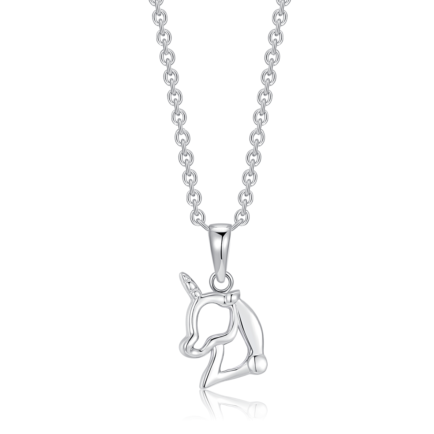 Fortryllende sølvhalskæde med et smukt rhodineret enhjørningevedhæng, der symboliserer fantasi og magi. Halskæden er lavet af ægte sølv og har en skinnende, rhodineret overflade, som beskytter mod anløbning og bevarer sin glans. Med sit unikke design passer den perfekt til både børn og voksne, der elsker eventyrlige og elegante smykker. Et vidunderligt valg som gave.