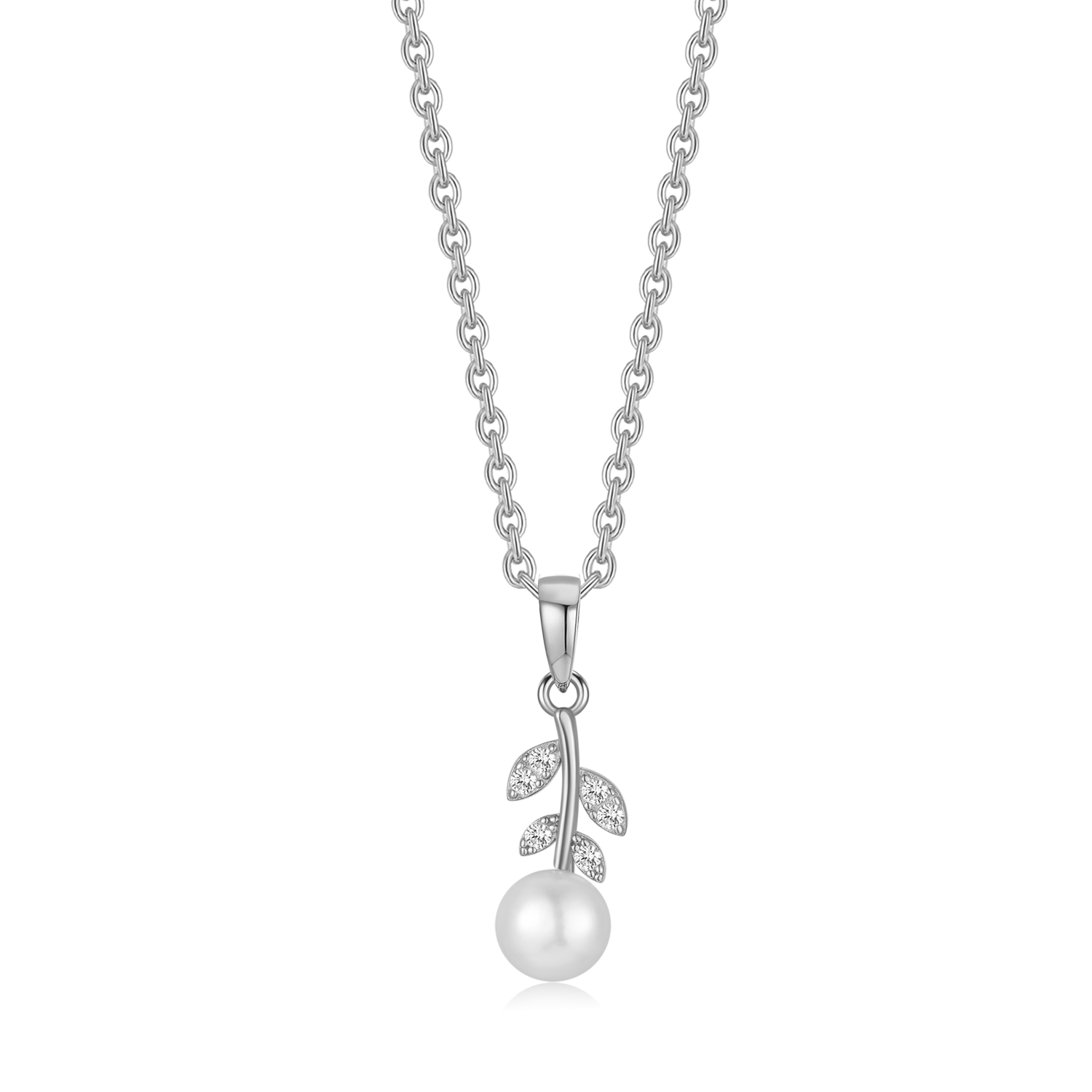 Smuk sølvhalskæde med et elegant rhodineret vedhæng formet som fire blade, udsmykket med funklende syntetiske cubic zirconia og en ægte ferskvandsperle. Smykket kombinerer naturinspiration og klassisk elegance, hvilket gør det ideelt til både hverdag og fest. Fremstillet i ægte sølv med rhodinering, der beskytter mod anløbning og bevarer sin smukke glans over tid.