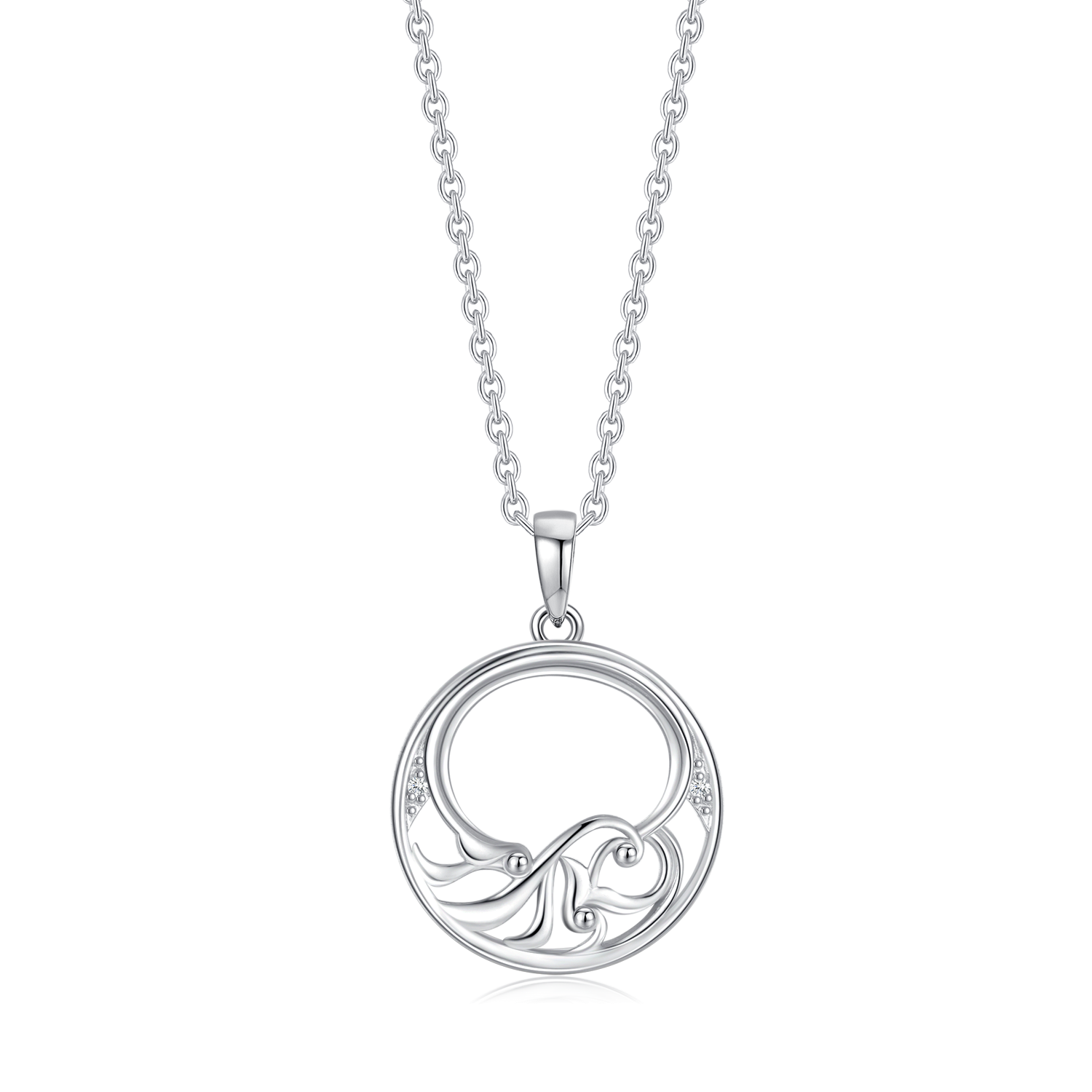 Elegant sølvhalskæde med et smukt rhodineret cirkelvedhæng dekoreret med et delikat mønster og en funklende syntetisk cubic zirconia i midten. Smykket kombinerer klassisk design med moderne detaljer og giver et tidløst, sofistikeret udtryk. Fremstillet i ægte sølv med rhodinering, der beskytter mod anløbning og bevarer sin glans. Perfekt til både hverdag og festlige lejligheder.