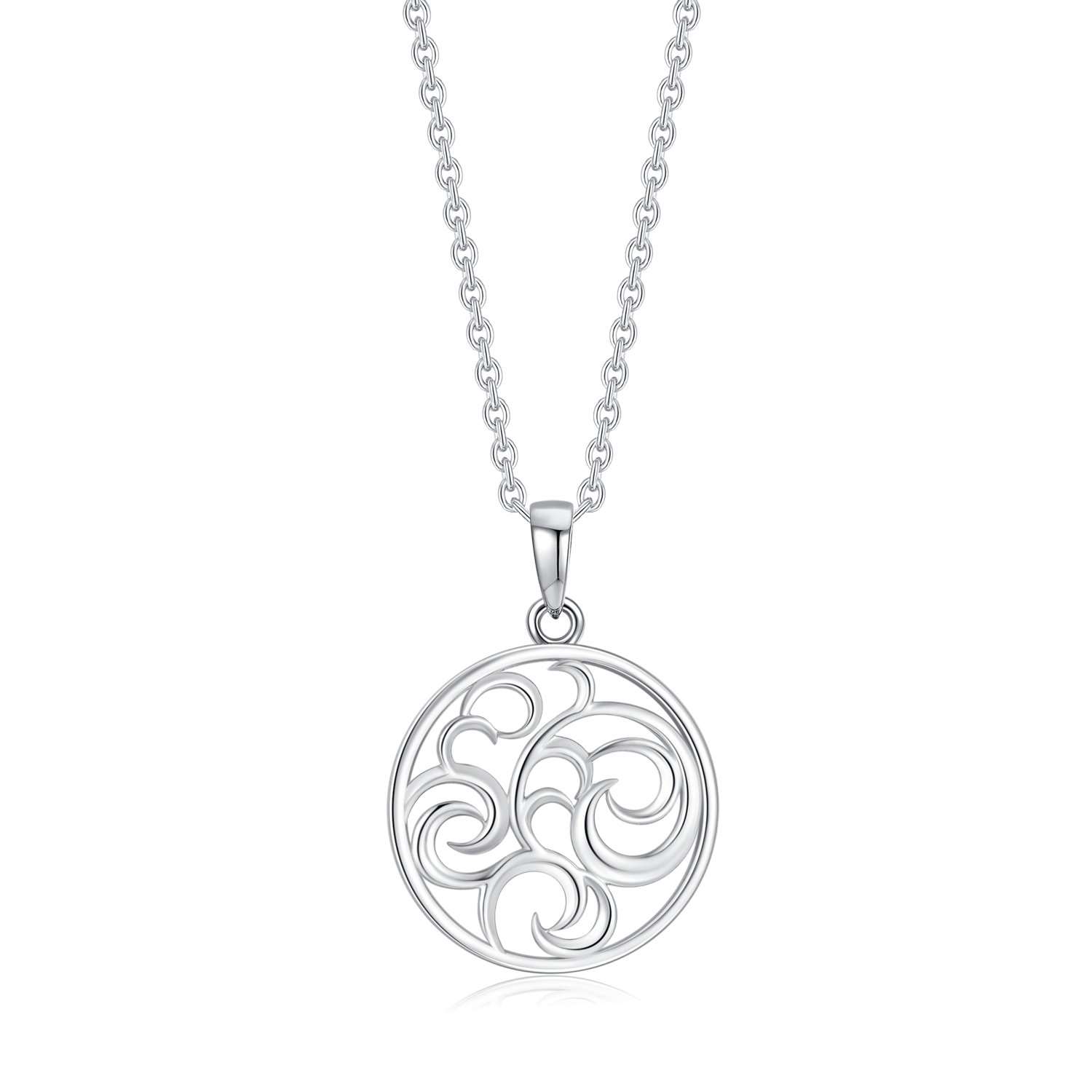 Stilfuld sølvhalskæde med et elegant rhodineret cirkelvedhæng dekoreret med et fint mønster og funklende syntetiske cubic zirconia. Smykket udstråler klassisk skønhed og raffinement, perfekt til både hverdag og festlige lejligheder. Halskæden er fremstillet i ægte sølv med en rhodineret overflade, der beskytter mod anløbning og sikrer langvarig glans og holdbarhed.