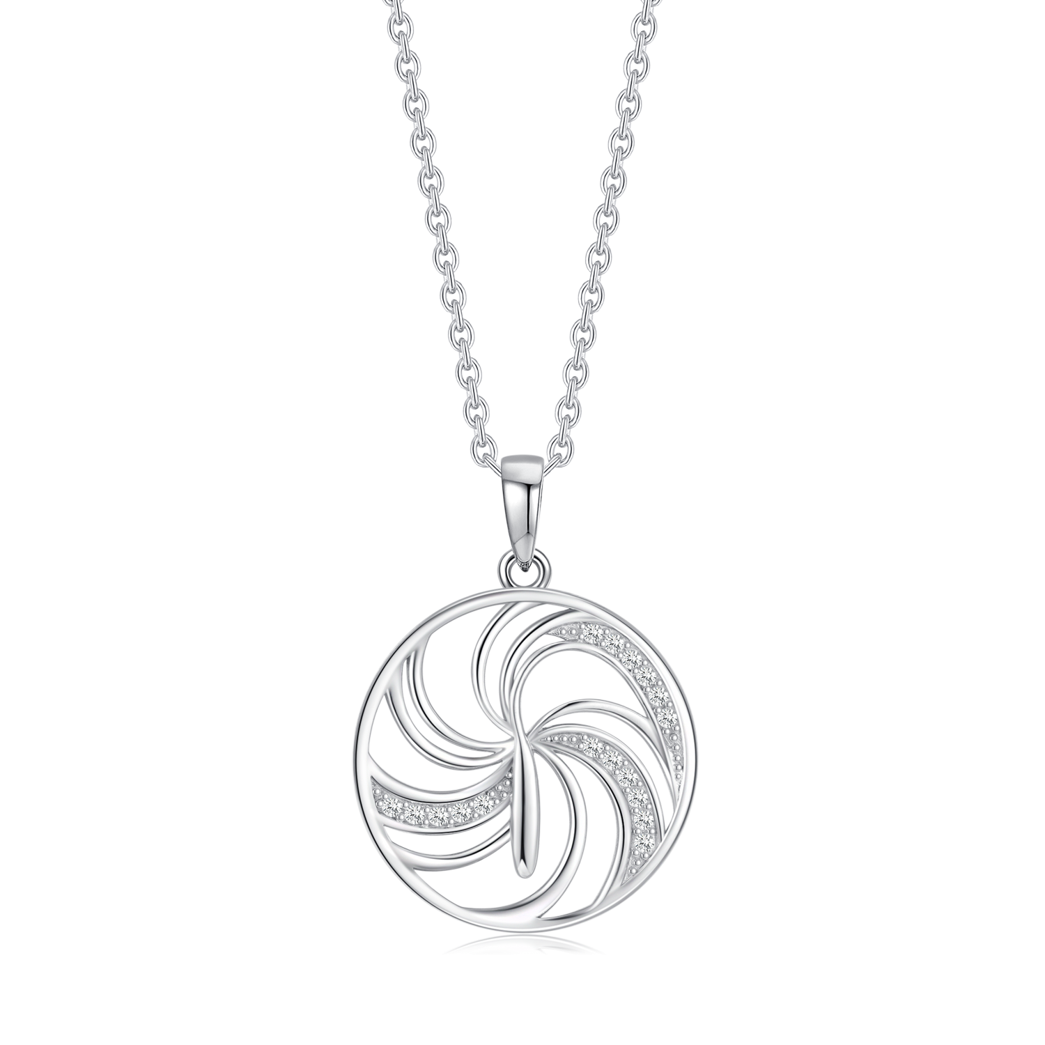 Smuk sølvhalskæde med et elegant rhodineret cirkelvedhæng dekoreret med fine streger, mønster og funklende syntetiske cubic zirconia. Smykket udstråler klassisk skønhed med et moderne twist og tilføjer et strejf af glans til enhver stil. Fremstillet i ægte sølv med en rhodineret overflade, der beskytter mod anløbning og bevarer sin glans over tid.