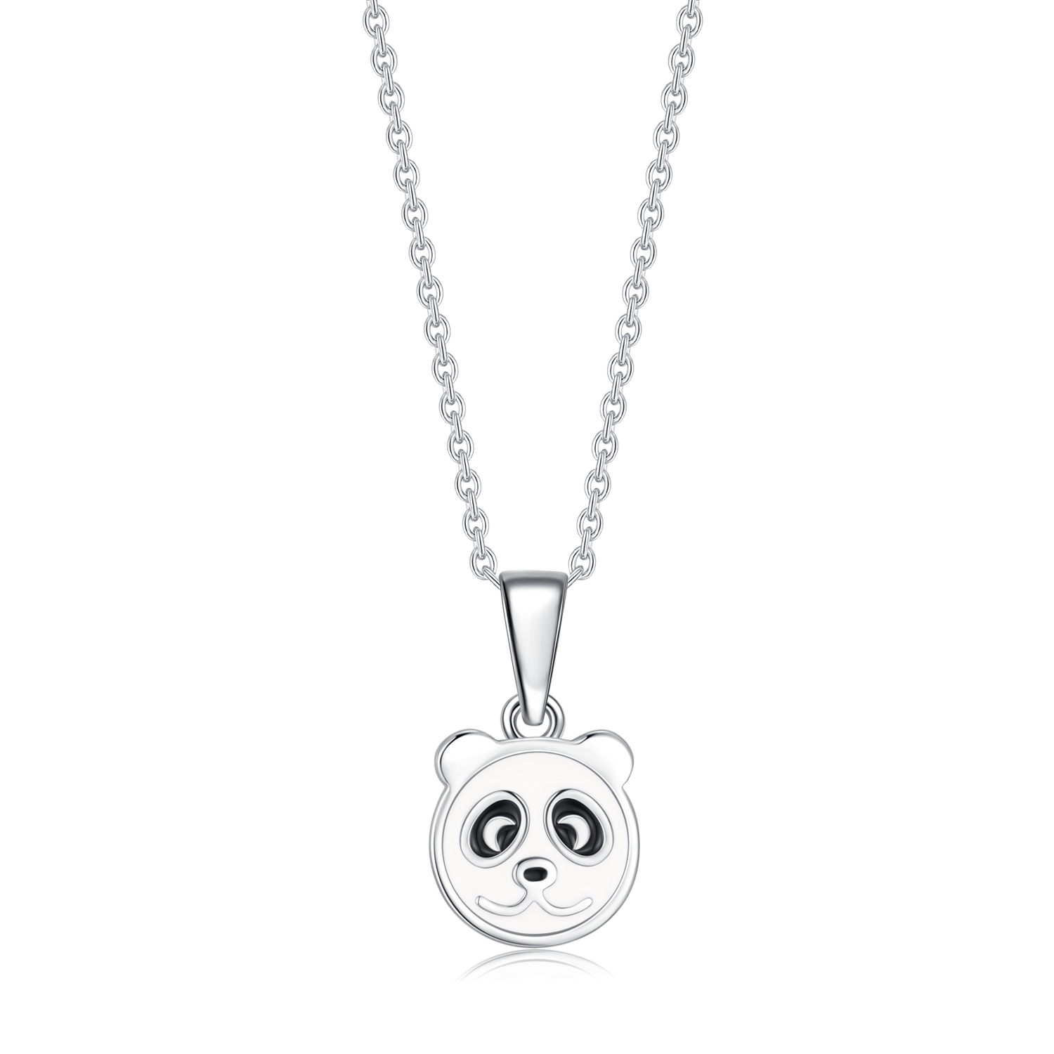 Sød og charmerende sølvhalskæde med et rhodineret panda-vedhæng i hvid emalje og sorte øjne. Smykket har et legende og sødt udtryk, som gør det perfekt til børn eller dyreelskere. Fremstillet i ægte sølv med en rhodineret overflade, der beskytter mod anløbning og bevarer glansen. En kær og stilfuld halskæde, der bringer et smil frem hver gang.