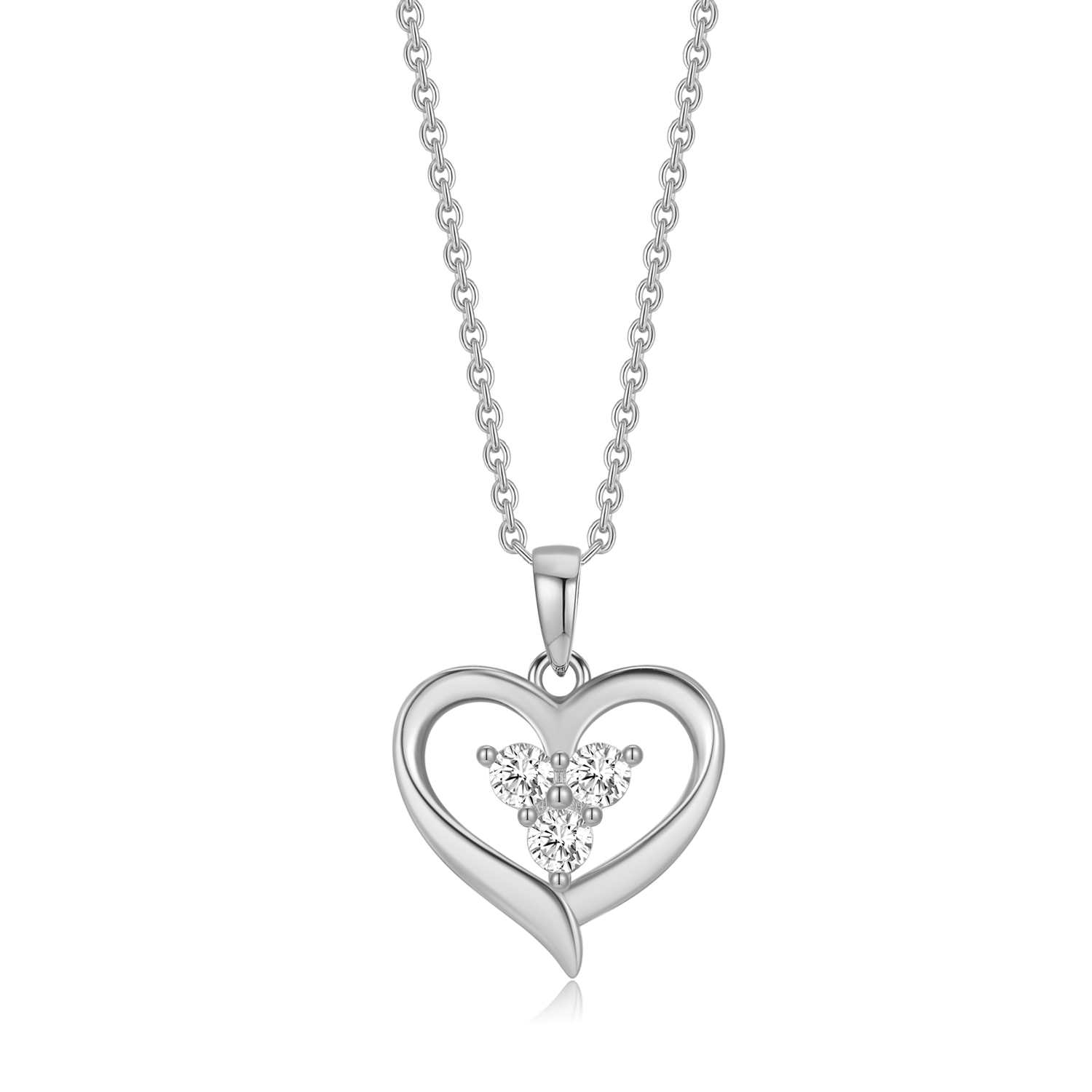 - Vedhæng: Hjerte med 3 syntetiske cubic zirconia i midten