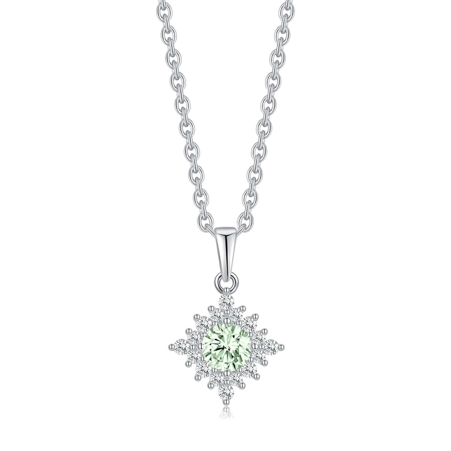 En elegant rhodineret sølvhalskæde med et firkantet vedhæng, der udstråler klassisk skønhed og raffinement. Midten prydes af en smuk, lys smaragdfarvet sten omgivet af funklende syntetiske cubic zirconia, som giver et luksuriøst og iøjnefaldende udtryk. Den rhodinerede overflade sikrer ekstra glans og modstandsdygtighed – perfekt til både hverdagsbrug og festlige anledninger.