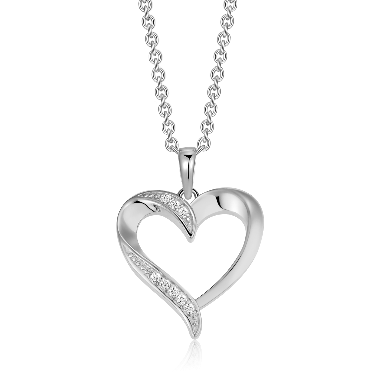 Denne smukke rhodinerede sølvhalskæde har et hjertevedhæng, prydet med syntetiske cubic zirconia, som giver et elegant og glitrende udtryk. Hjertet symboliserer kærlighed og romantik, og den tidløse design gør halskæden til et ideelt valg til både hverdag og særlige lejligheder.