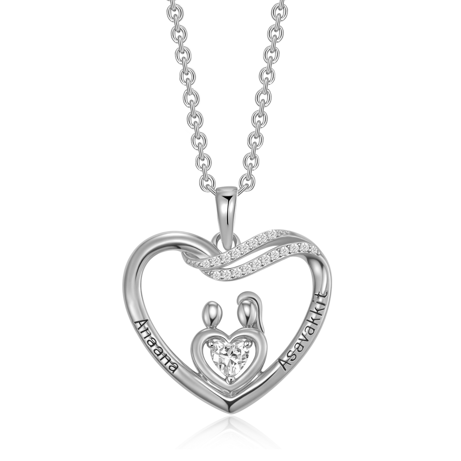 Denne elegante rhodinerede sølvhalskæde har et hjertevedhæng, der symboliserer "Mor og barn," prydet med syntetiske cubic zirconia. Vedhænget er indgraveret med teksten "Anaana" på venstre kant og "Asavakkit" på højre kant, hvilket tilføjer en personlig og betydningsfuld dimension. Et smukt og rørende smykke, perfekt til at fejre moderskab og kærlighed.