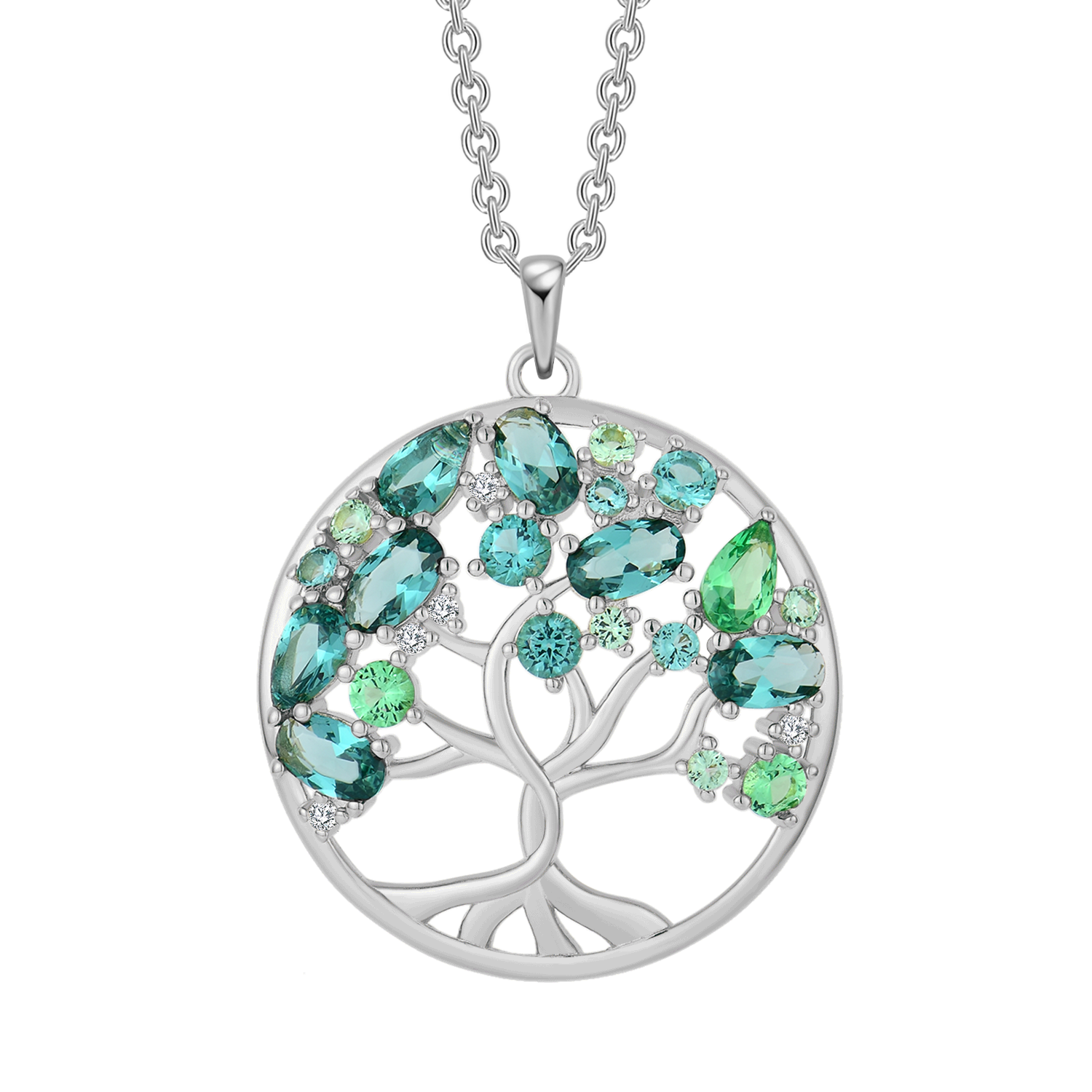 Denne smukke sølvhalskæde er rhodineret og har et "Livets Træ"-design i en cirkel. Livets træ er detaljeret med grønne syntetiske cubic zirconia, der symboliserer vækst og forbindelse. Et tidløst smykke, der kombinerer naturens skønhed med elegance, perfekt til enhver lejlighed. Kæden er justerbar og giver et elegant look, der passer til både hverdag og fest.