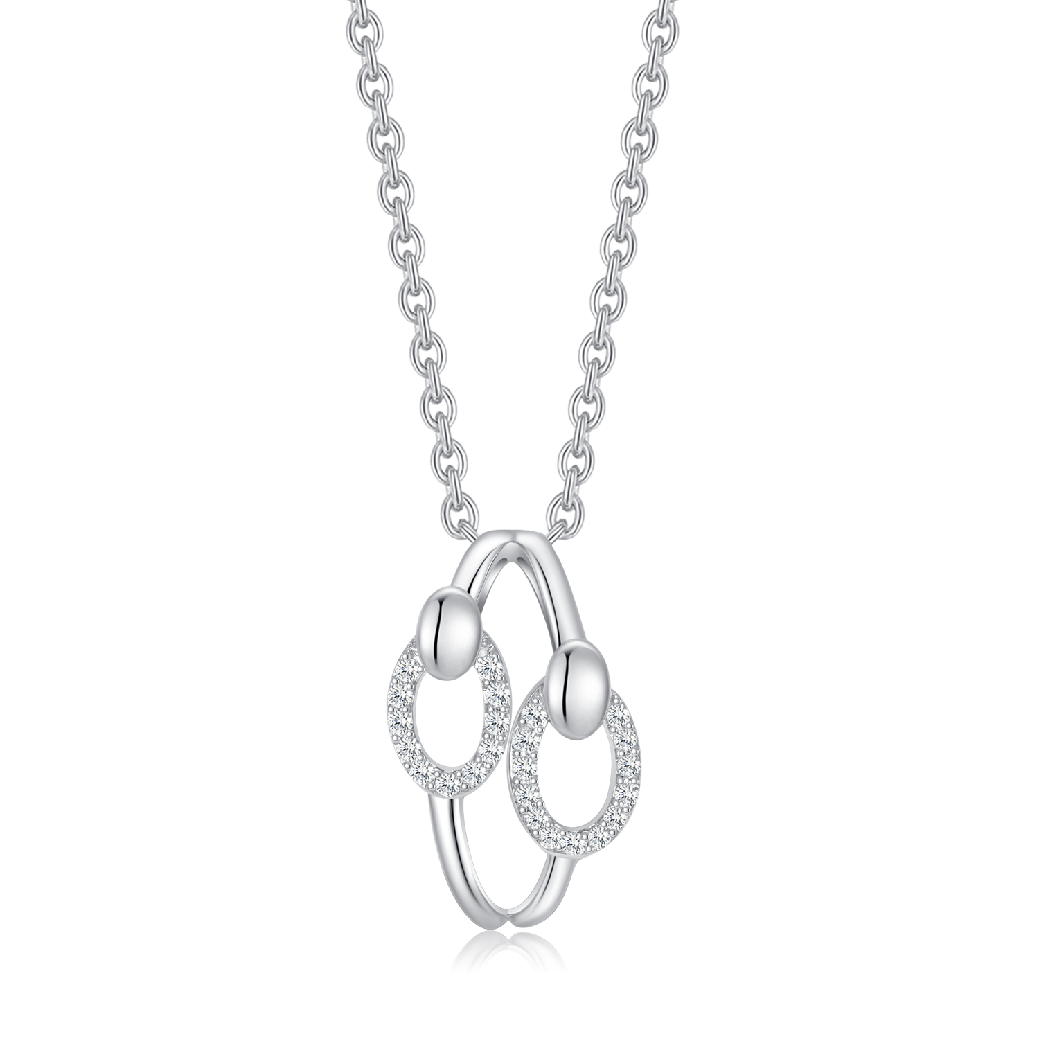 Denne elegante sølvhalskæde har et smukt ovalt vedhæng, indrammet af funklende syntetiske cubic zirconia langs kanten og toppet med en lukket oval detalje. Smykket er fremstillet i rhodineret sterlingsølv, som giver en strålende glans og beskytter mod anløbning. En tidløs og sofistikeret halskæde, der tilføjer et strejf af luksus til både hverdag og fest.