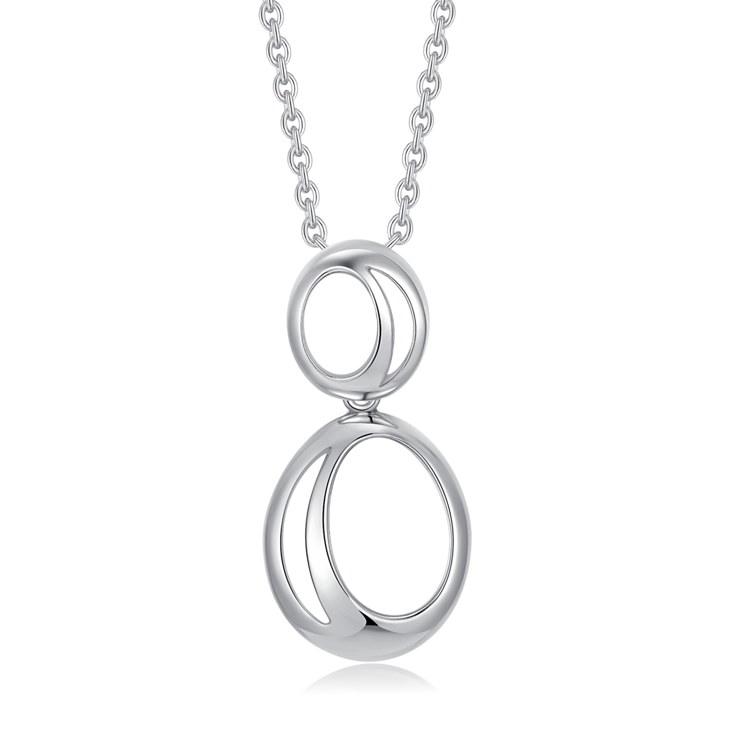 Denne elegante sølvhalskæde er rhodineret og har en dobbelt oval form. Den kombinerer moderne design med tidløs skønhed, hvilket gør den perfekt til enhver lejlighed. Halskæden er både stilfuld og holdbar, og dens rhodinerede finish giver den en smuk, skinnende overflade, der modstår ridser og misfarvning.
