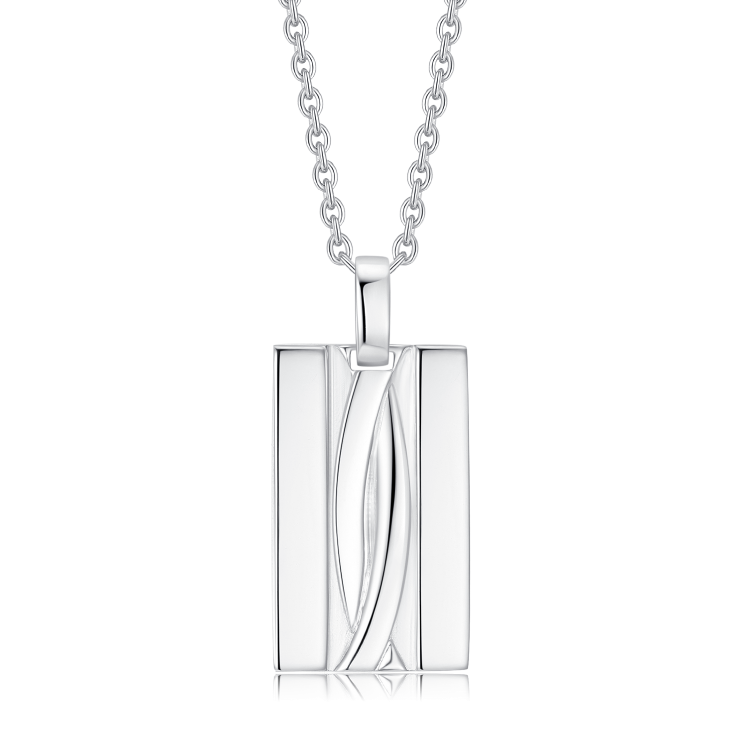 Denne elegante rhodinerede sølvhalskæde har en firkantet plade med et smukt mønster, der giver et moderne og stilfuldt udtryk. Halskæden er perfekt til både hverdagsbrug og festlige anledninger, og den rhodinerede finish sikrer, at den bevarer sin skinnende og holdbare overflade.