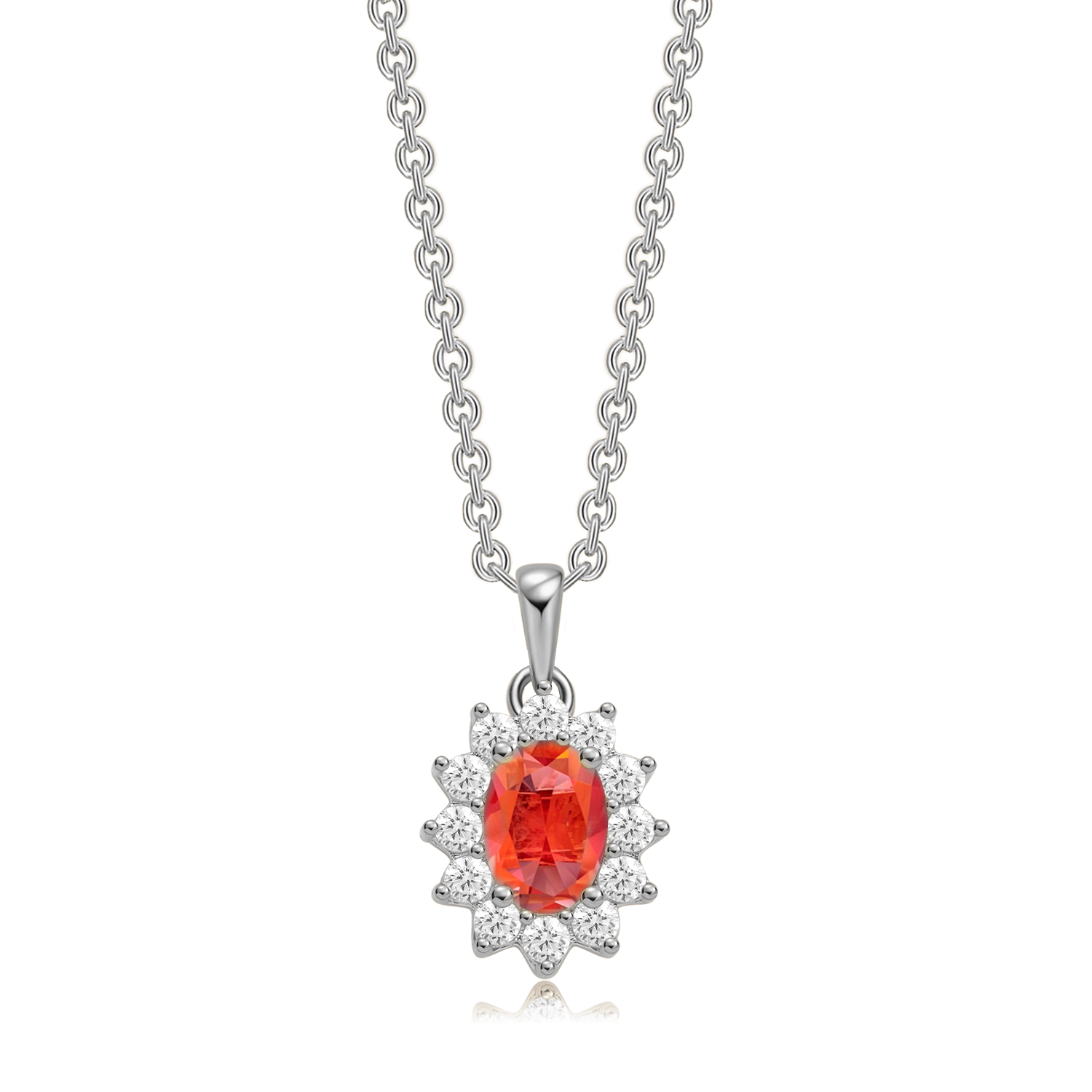 Denne elegante rhodinerede sølvhalskæde har en oval form med syntetisk cubic zirconia og en smuk rubin som midtpunkt. Kombinationen af det glitrende zirconia og den røde rubin giver halskæden et luksuriøst og sofistikeret udseende. Perfekt til at tilføje et elegant touch til enhver påklædning.