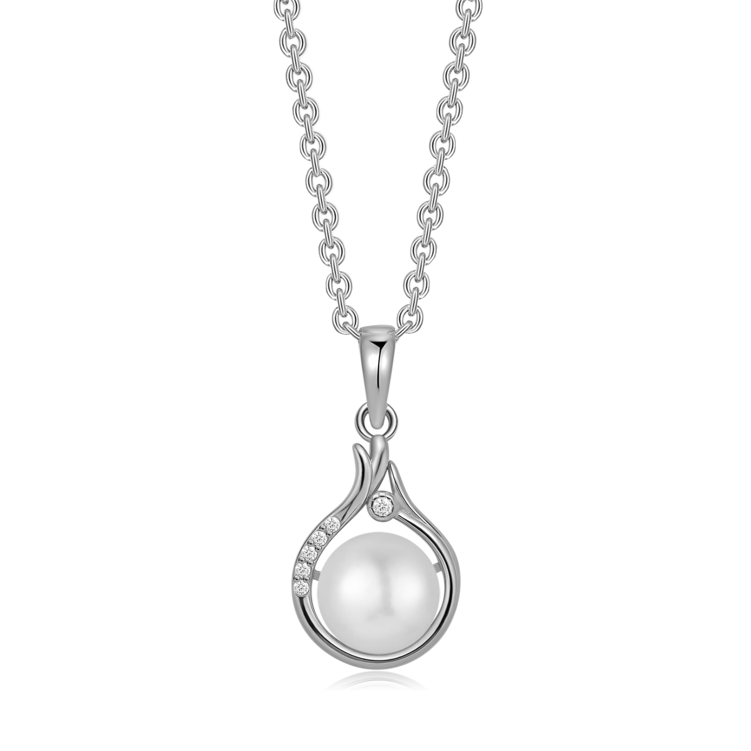 Elegant og tidløs sølvhalskæde i rhodineret sølv, designet med en dråbeformet vedhæng prydet med funklende syntetiske cubic zirconia og en smuk ferskvandsperle. Halskæden kombinerer klassisk skønhed og moderne raffinement – perfekt til både hverdag og fest. Den rhodinerede overflade giver ekstra glans og beskytter mod anløbning, hvilket sikrer langvarig holdbarhed og stilfuldt udtryk.