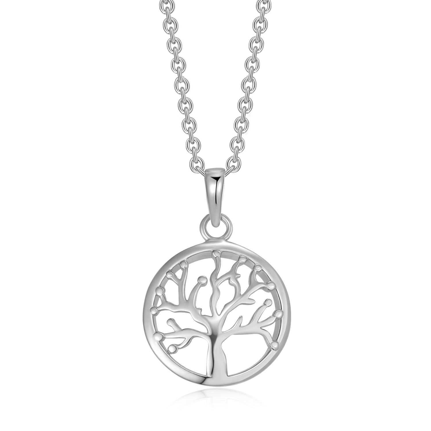 Denne elegante sølv halskæde prydes af et smukt livets træ design indrammet i en cirkel, dekoreret med syntetiske cubic zirconia for ekstra glans. Den rhodinerede sølvkæde tilføjer både holdbarhed og luksus. Med en justerbar længde, er denne halskæde perfekt til både daglig brug og specielle anledninger, og symboliserer livets vækst og forbindelser.