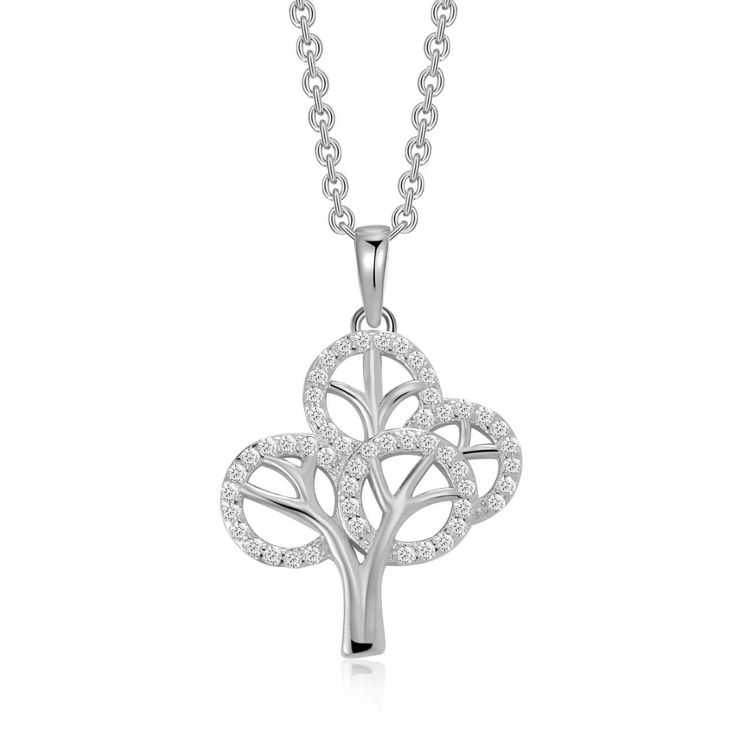 Denne smukke sølv halskæde prydes af et livets træ-design, dekoreret med syntetiske cubic zirconia, som giver et strålende og elegant look. Halskæden er rhodineret, hvilket giver både et luksuriøst udseende og langvarig holdbarhed. Den justerbare længde gør den ideel til enhver anledning, fra hverdagsbrug til specielle events, og symboliserer livets vækst og forbindelser.