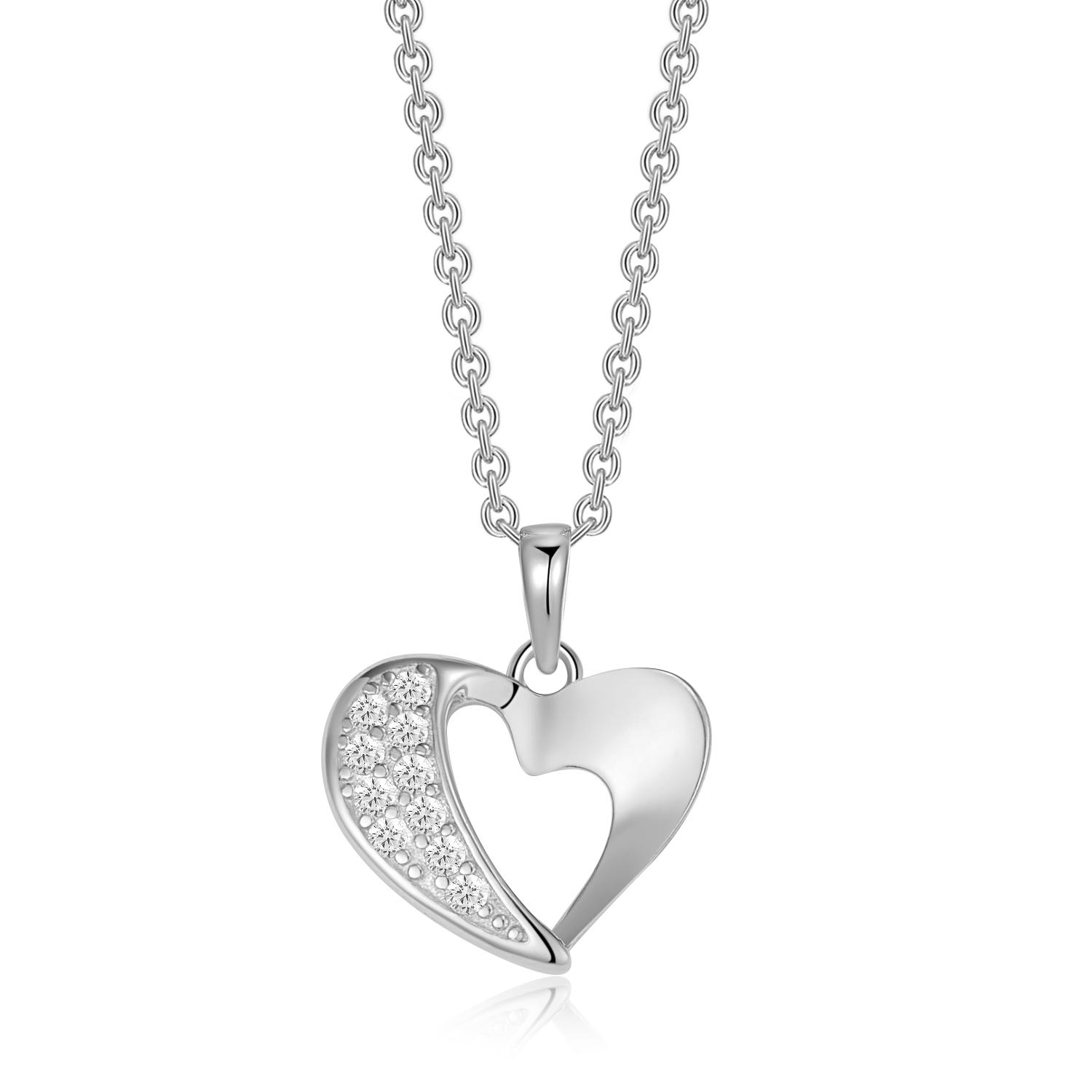 Denne smukke sølv halskæde har et rhodineret hjerte, smykket med syntetiske cubic zirconia, som tilføjer et elegant og funklende udtryk. Halskæden er lavet af rhodineret sølv, hvilket giver både et luksuriøst udseende og holdbarhed. Med en justerbar længde er den ideel til både hverdag og festlige anledninger og vil helt sikkert fuldende dit look.